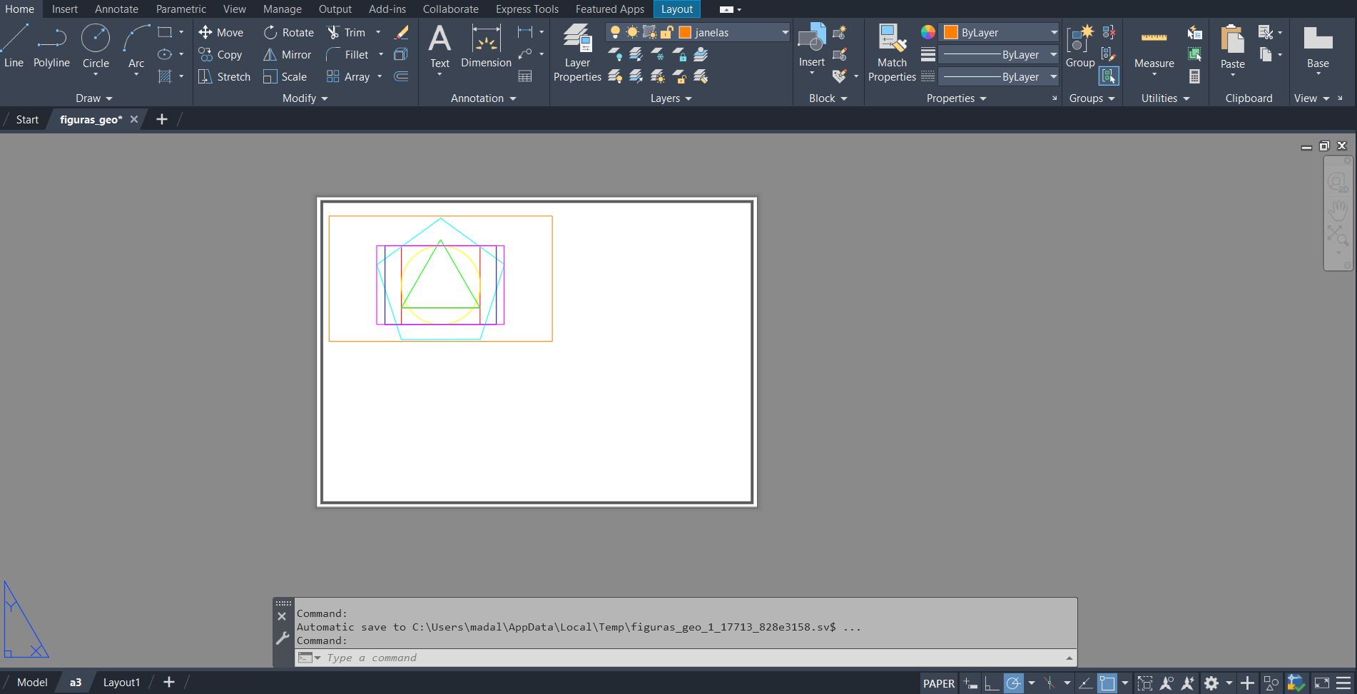 Com a layers criadas na ultima semana, fizemos as várias figuras ficando a conhecer os comandos: