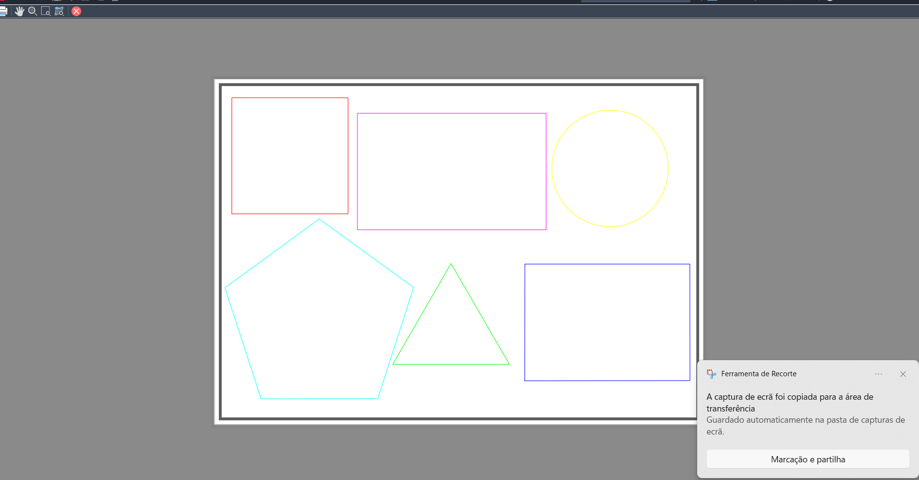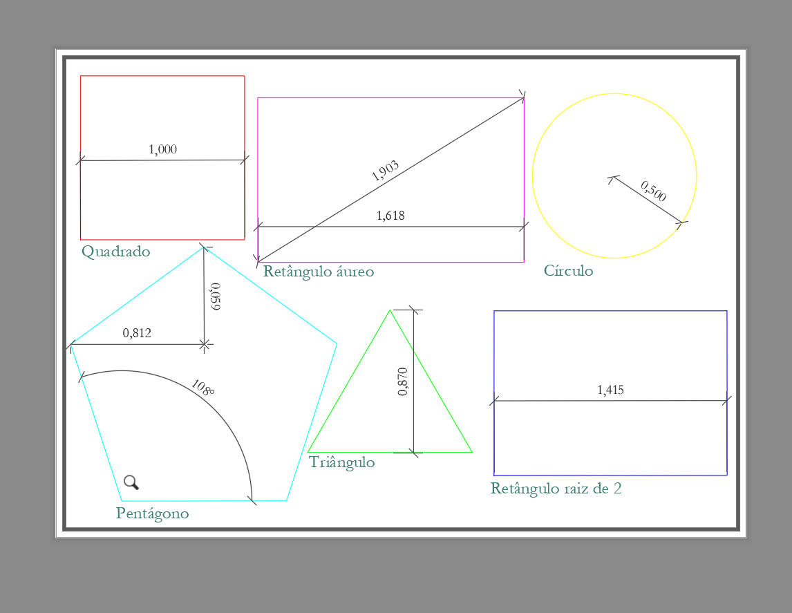 Aprendidas as novas ferramentas e feitos os ajustes, colocámos então os elementos em Paper Space, e congelamos todas as outras camadas menos a do quadrado.Copiámos a janela do quadrado 5 vezes para as respectivas 5 figuras restantes. Em cada uma das janelas, voltámos a layers e deixámos apenas uma figura visível, congelando todas as outras.