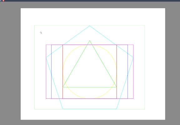 Realizamos o desenho de 6 formas geométricas: quadrado, círculo, triângulo, pentágono e 2 retãngulos,