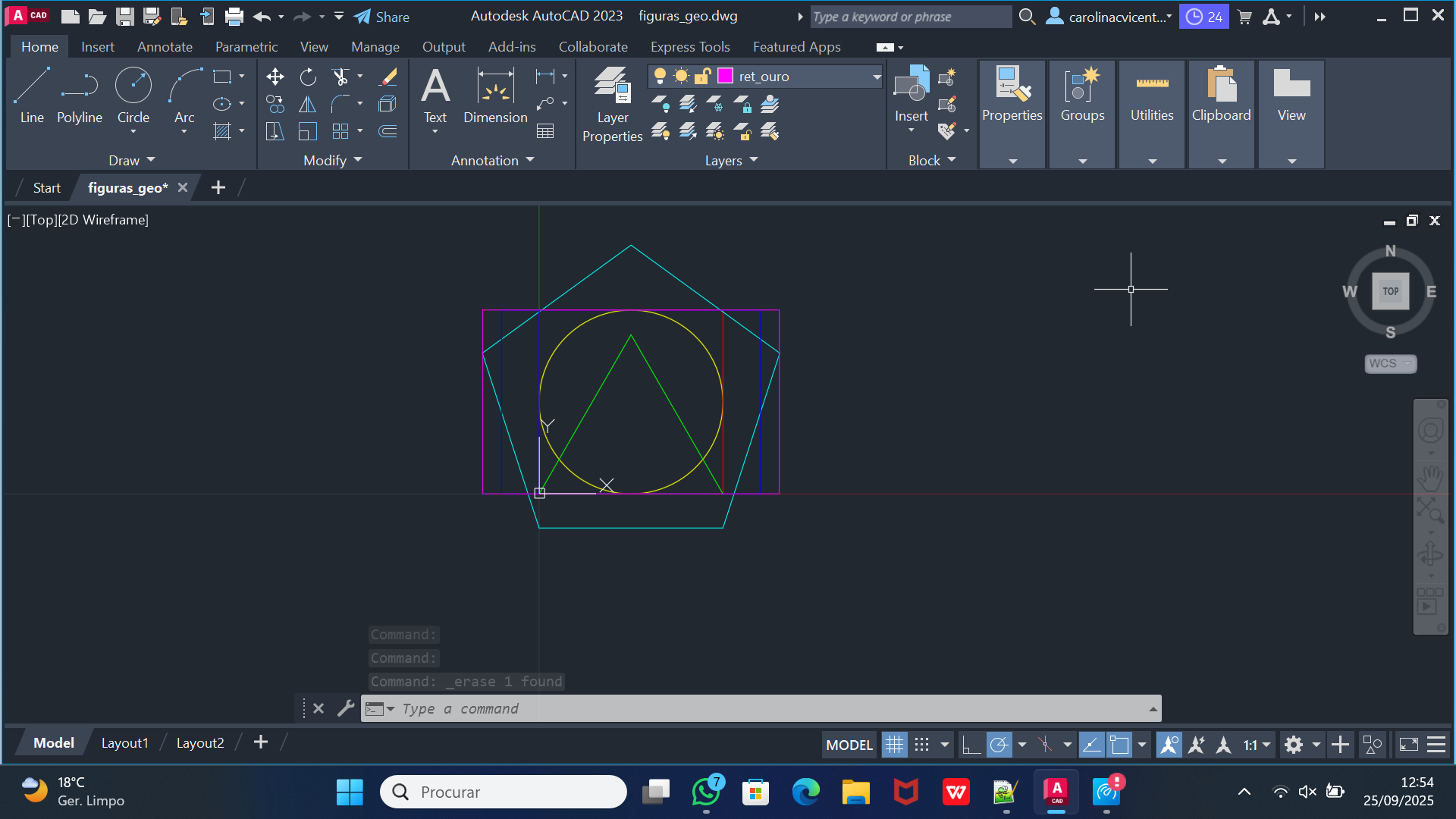 Continuação do exercício dos polígonos, criando cada um em diferentes camadas e por fim colocando todos com o mesmo centro.