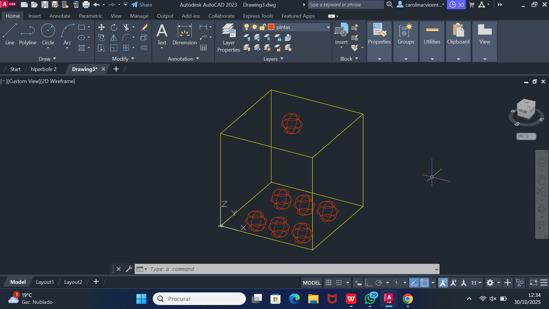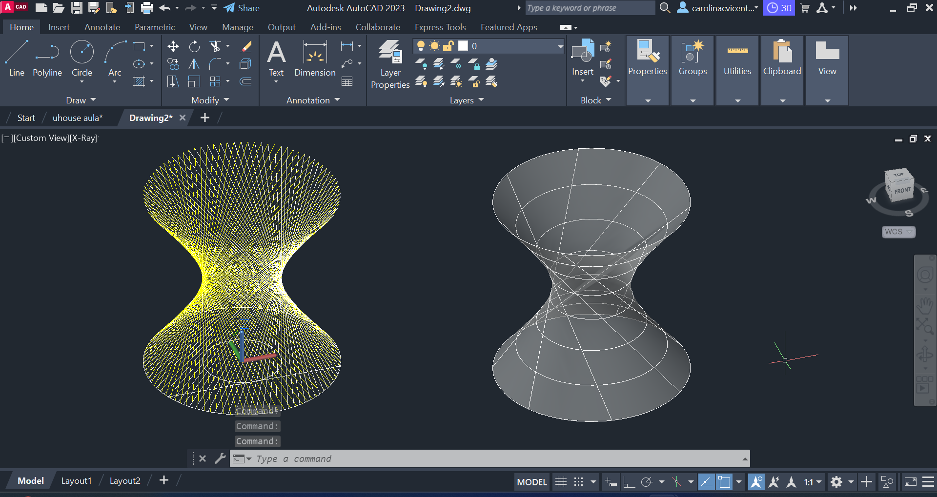 Criamos uma superfície hiperbólica com dois métodos diferentes e ainda uma superfície contínua através da geratriz da outra superfície.