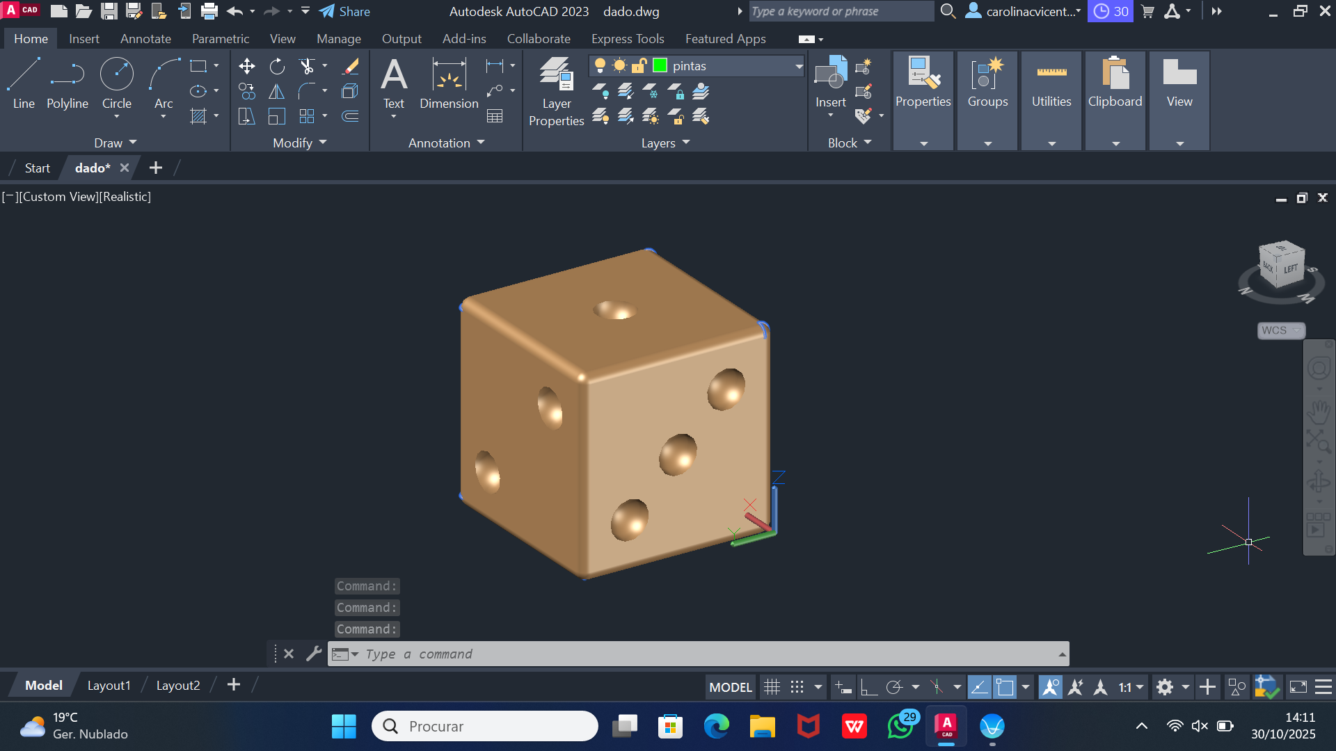 Ainda nesta semana constuímos um dado, retirando esferas e fazendo as arestas curvas.