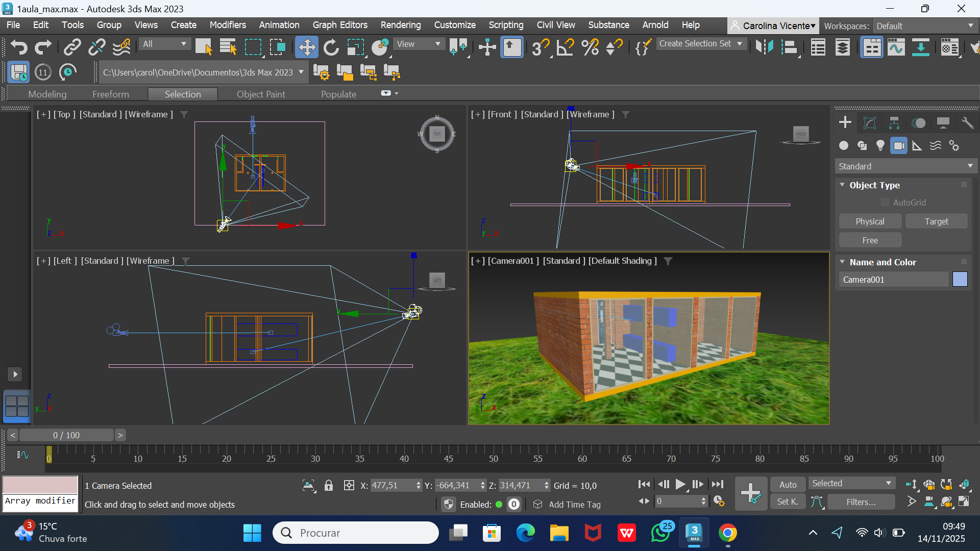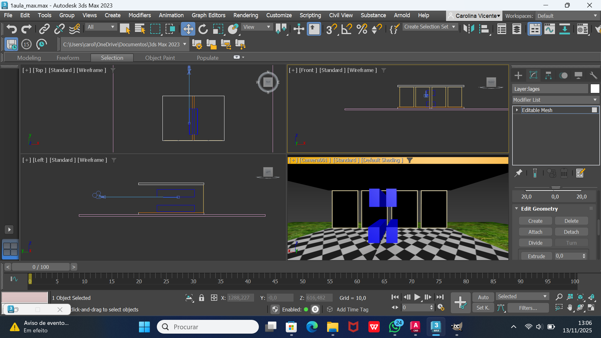 Colocamos também 2 câmaras. Uma sendo o convidado e outra um observador exterior.