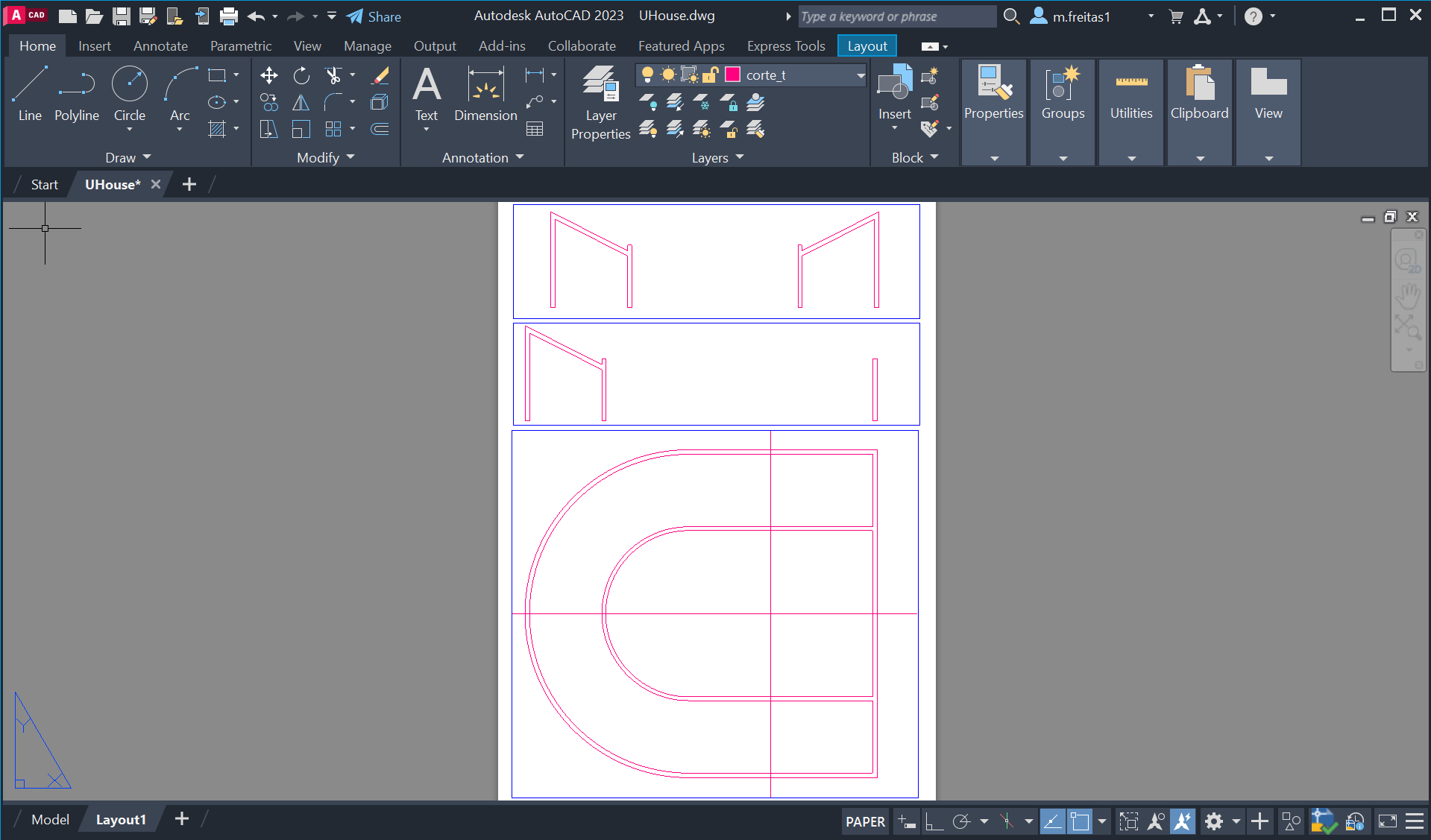 A partir das pirâmides, foram criadas secções para representar a planta e um corte.