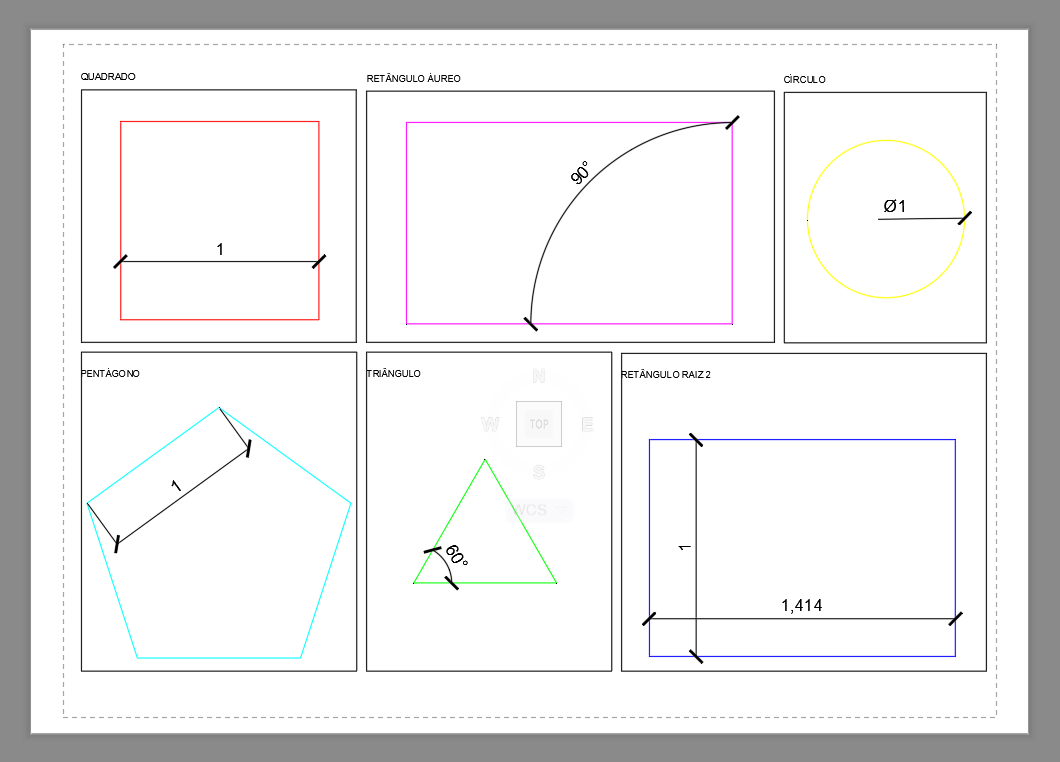 Continuação de desenhos de figuras geometricas em AutoCAD. Criação e persnaliza&cudila;ç&atil; de caixas de texto e criação de cotas .