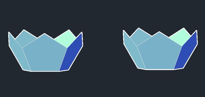 Por fim, Command: Arrayclassic para criar as cinco faces, copiar a metade e, Command: AL para unir as metades e concluir o sólido.