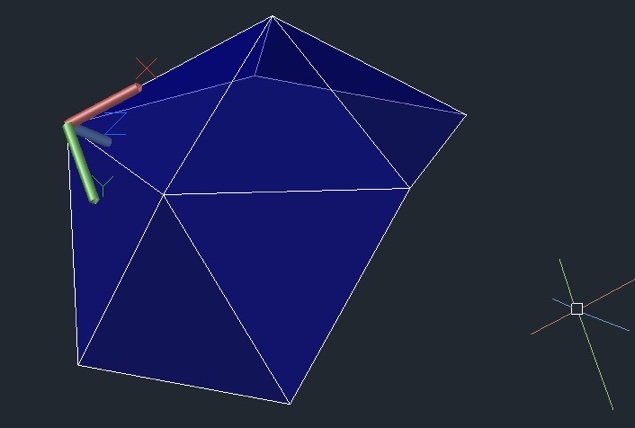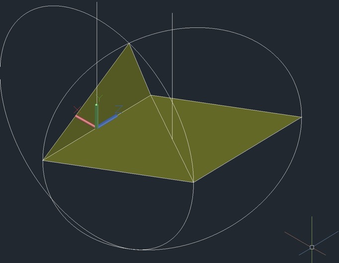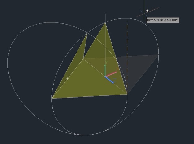 Identificação do centro do triângulo mais sua altura. UCS a indicar X para o vértice, e Y a perpendicular da base.