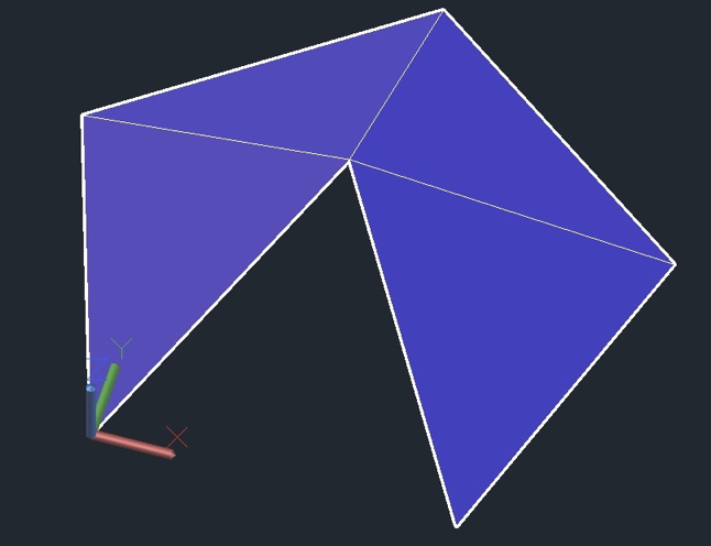 No levantamento, foi utilizado o Command: AL (align), que pede 6 pontos de referência.. Como se pretente rodar a figura em torno da aresta onde as faces se unem, os primeiros dois pontos são selecionados, obrigando a figura girar em torno dessa aresta.