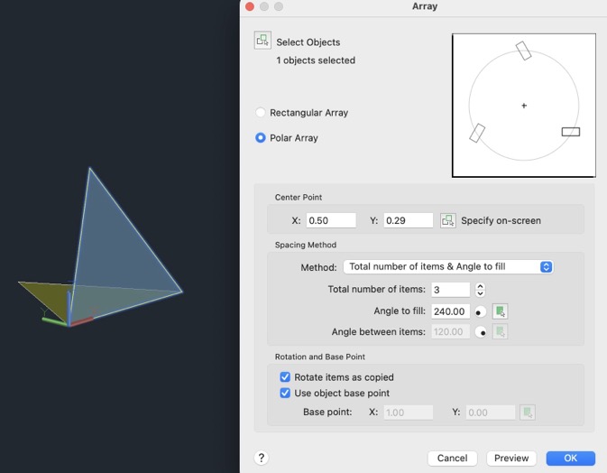 Usando sempre o UCS para orientar o ArrayClassic e finalizar o sólido.