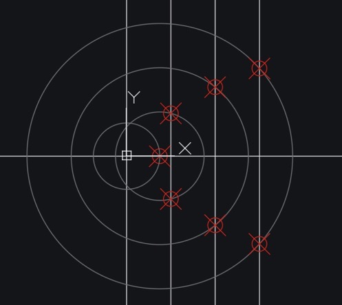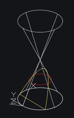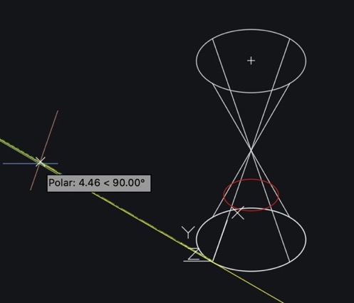 Command:XL perpendicular a um dos quadrantes do cone inferior.
