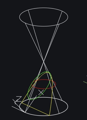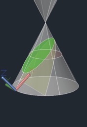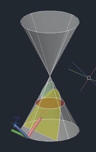 Na parábola, elipse e hipérbole foi necessário salvar o posicionamento do UCS permitindo o seu posicionamento automático.