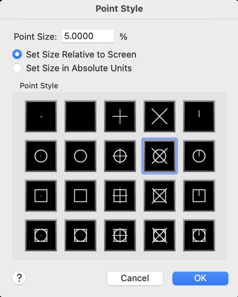 DDPYPE> point style, uma tabela de várias representações de pontos