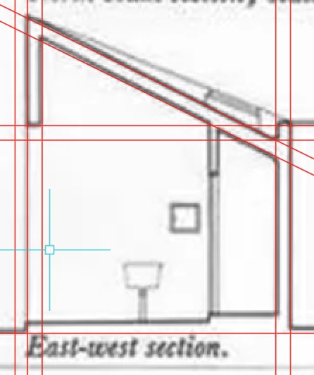 Desenho do da planta apenas das paredes exteriores, e do perfil.