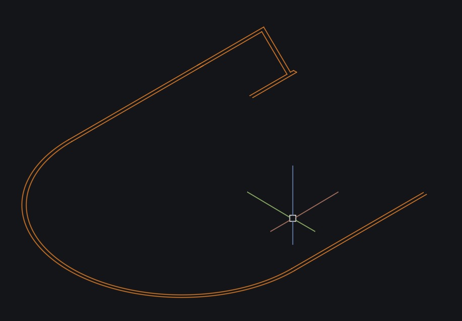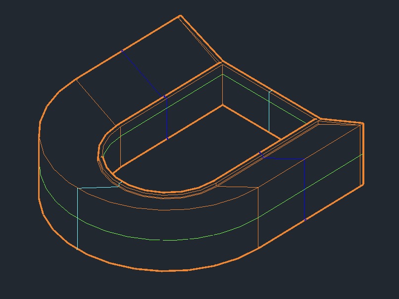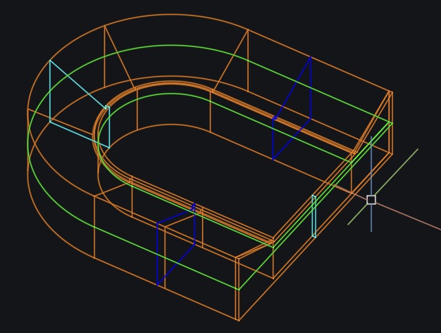 Command: EXTRUDE > Path - é o comando utilizado para criar formas 3D. Neste caso, o >path permite selecionar apenas a linha de contorno que o comando usará como referência, seguindo o perfil.