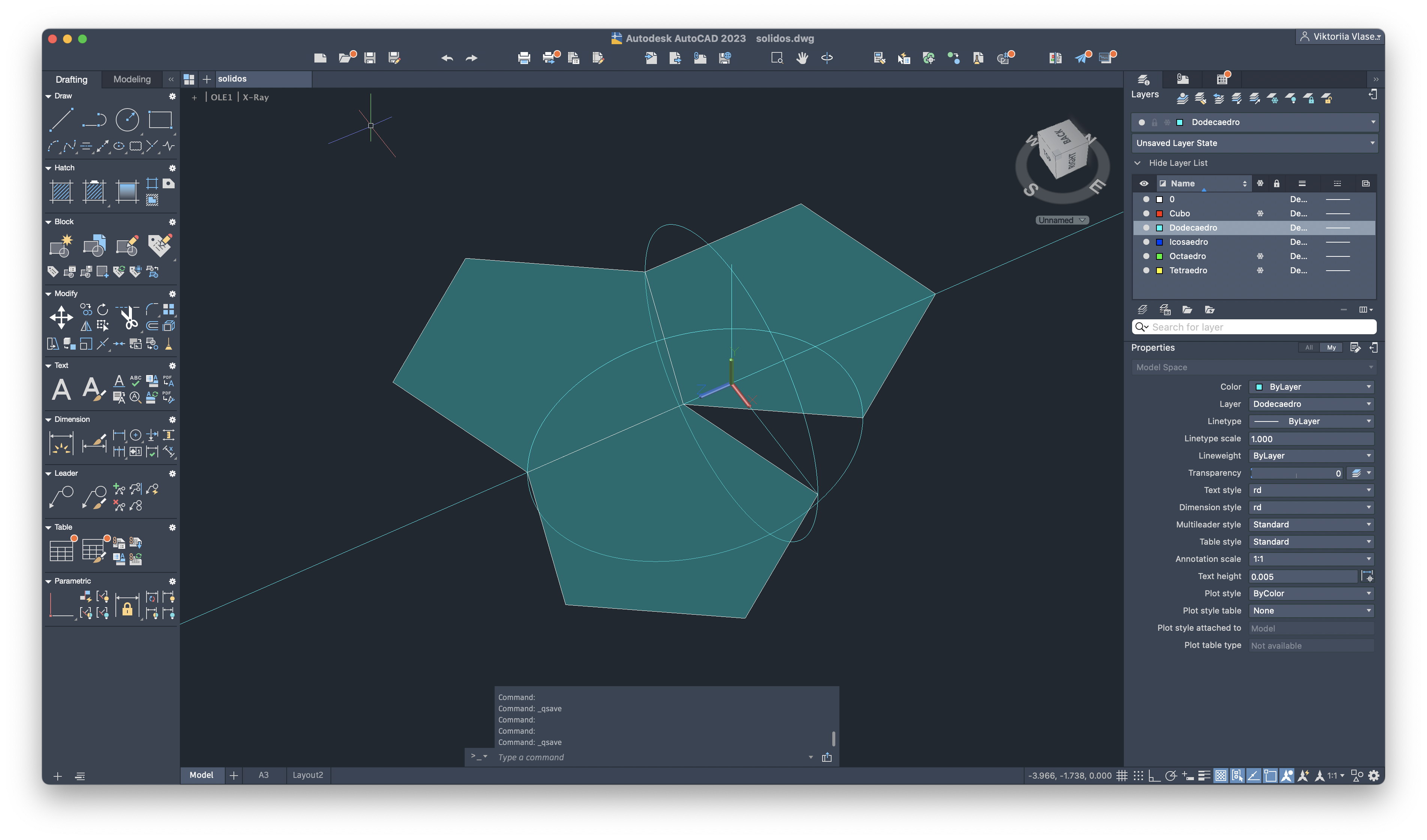 Criação de figuras 3D no AutoCAD.