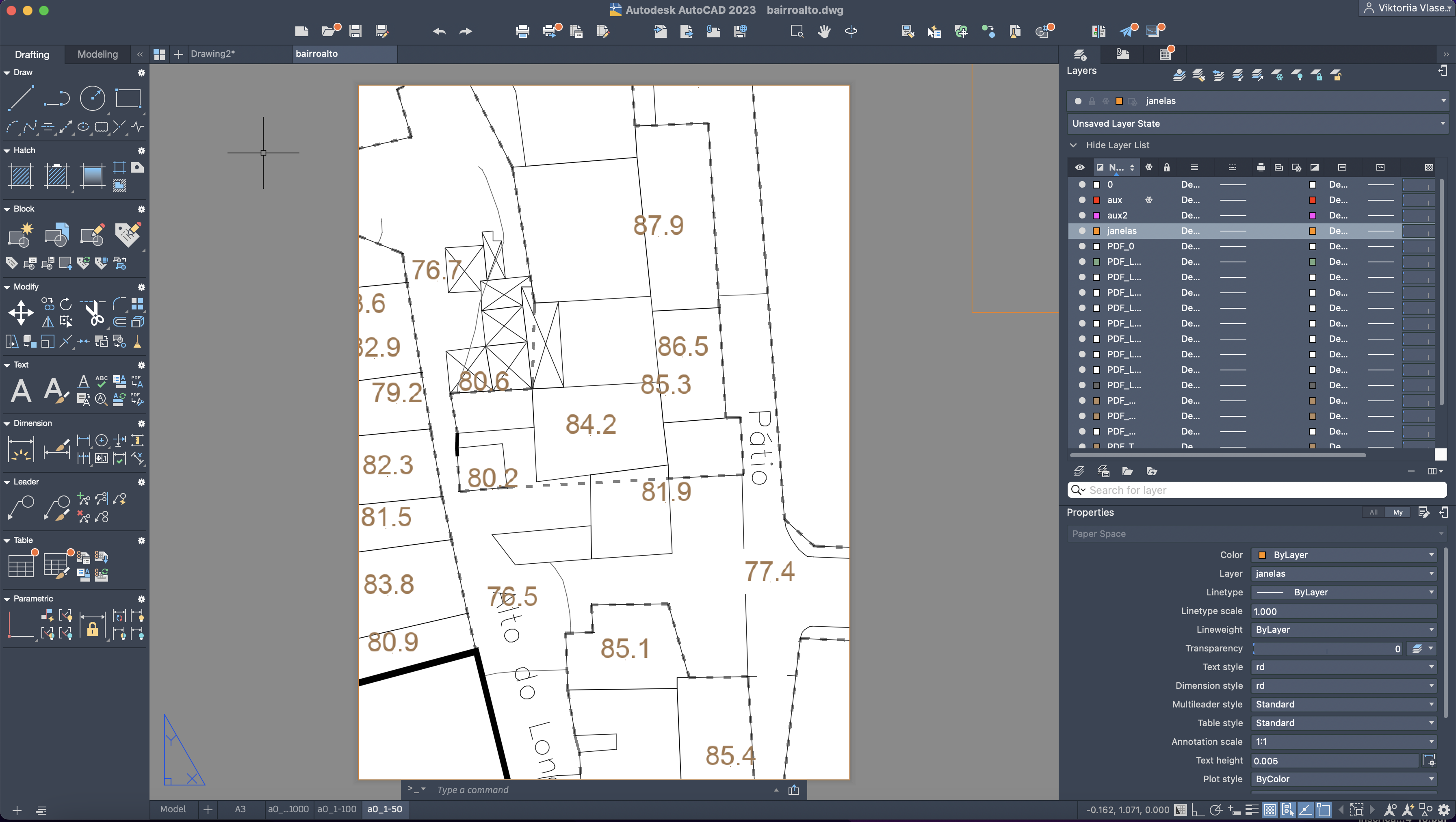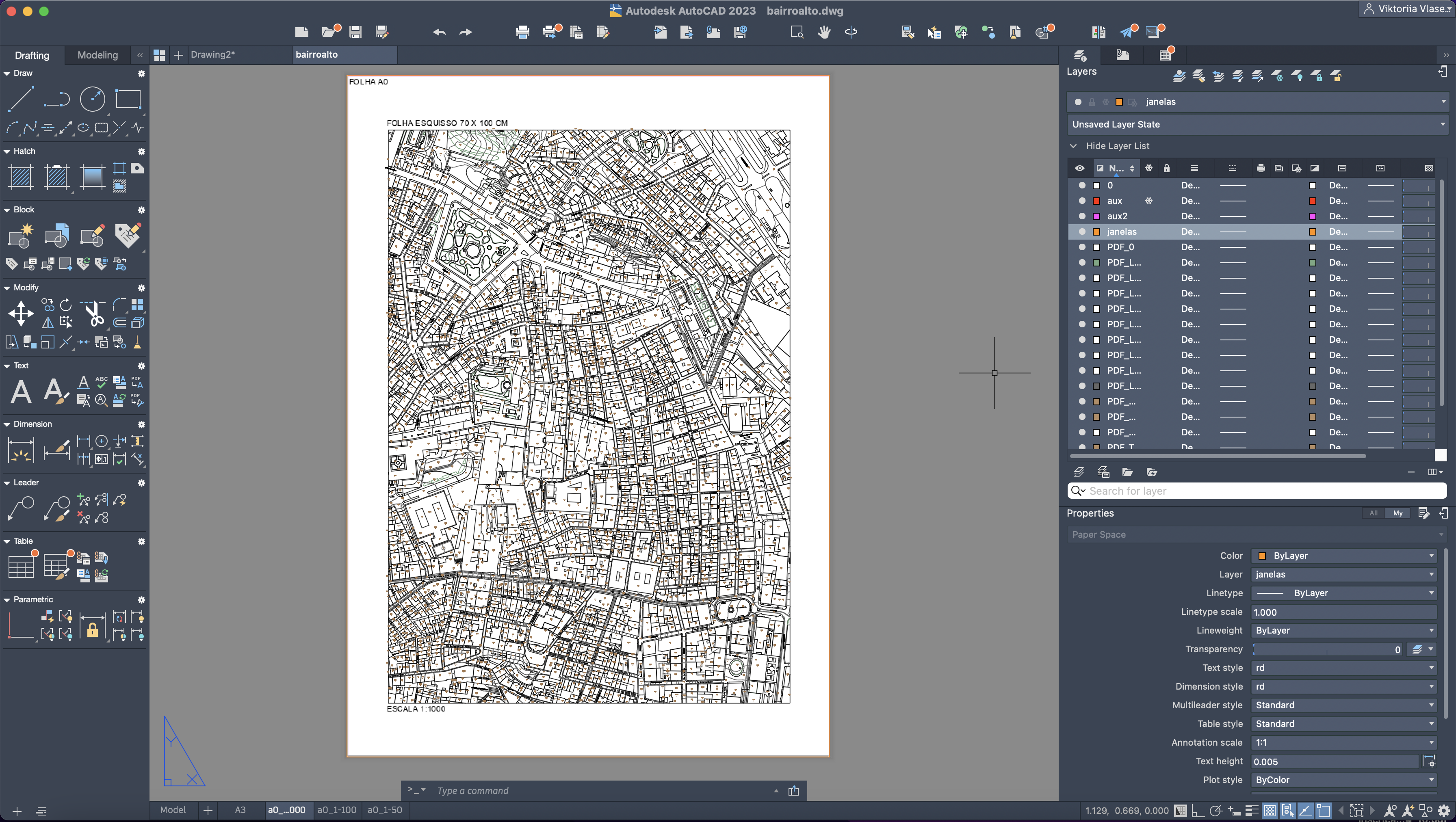 Início de um novo exercício de importação e manuseamento de uma planta, relacionada com a disciplina de Projeto, num novo ficheiro AutoCAD.