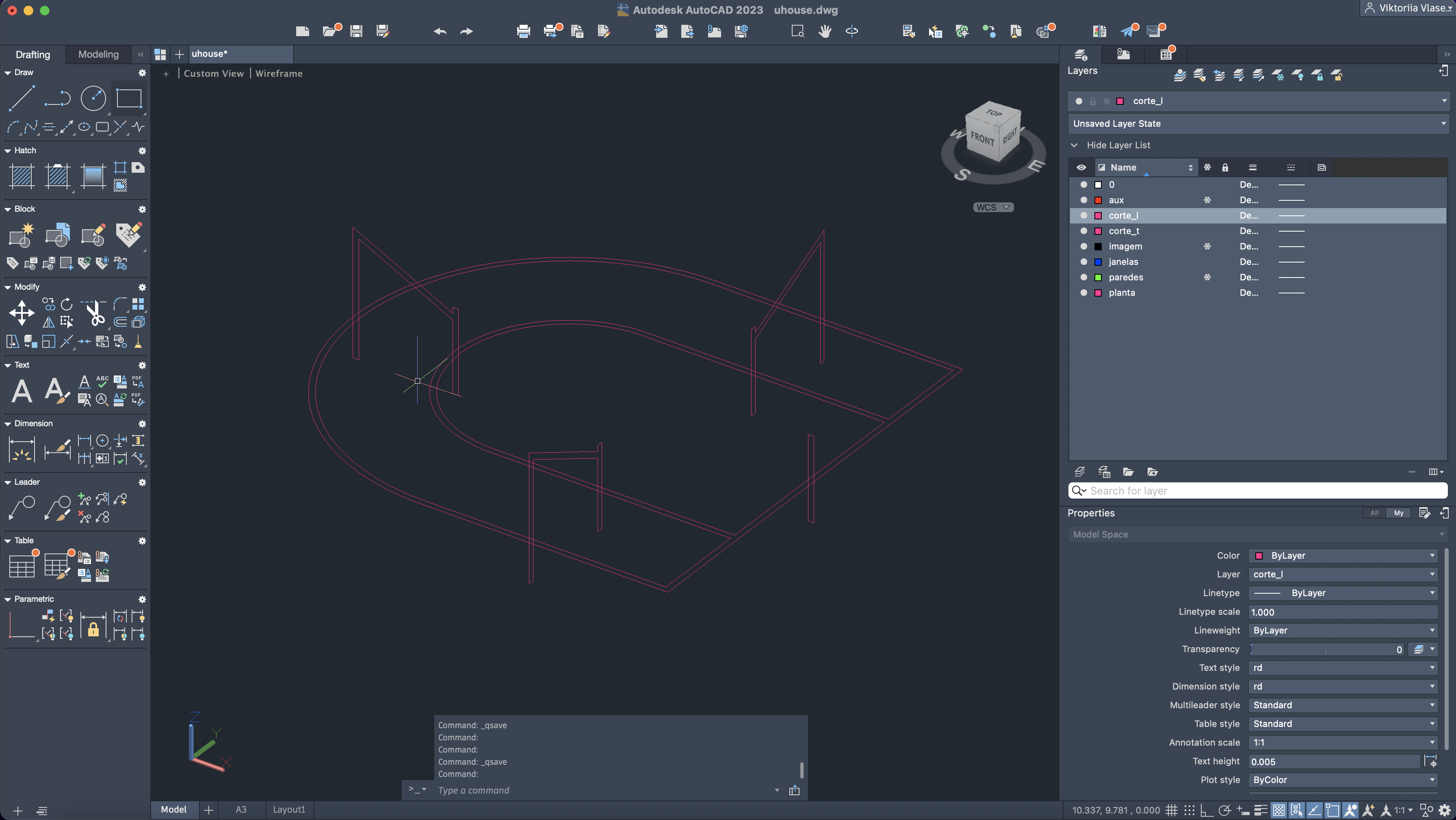 Início de um novo exercício de recriação de uma projeto do arquiteto Toyo Ito, denominada U HOUSE, num novo ficheiro >AutoCAD.