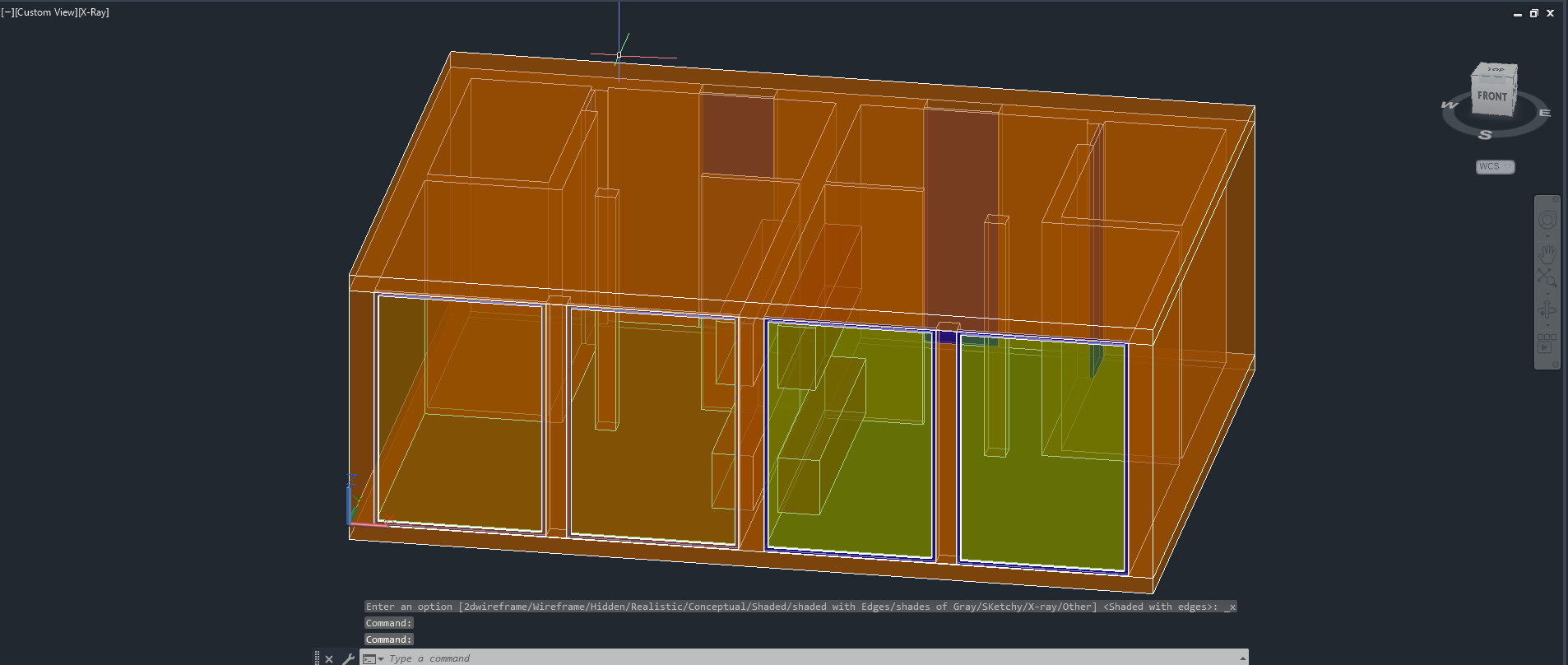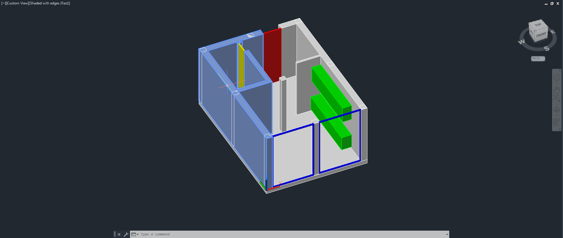 Criação dos vidros do T0, a partir dos comandos: UCS, RECTANGLE e REGION.