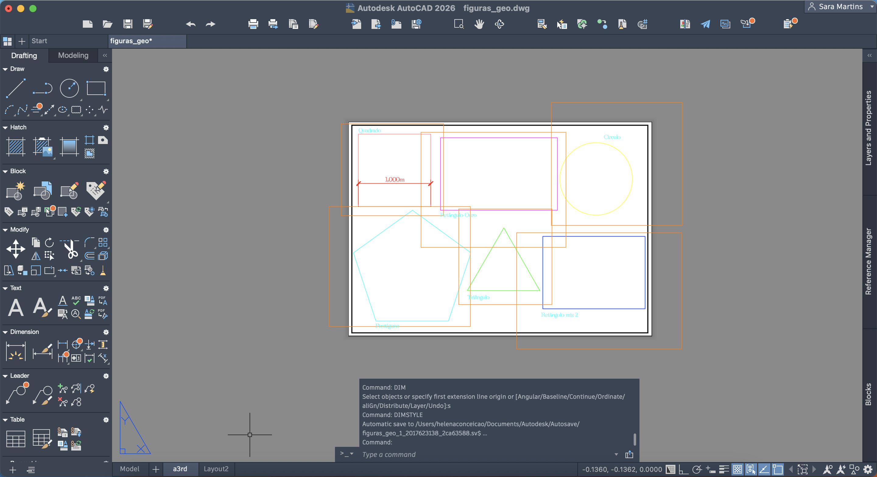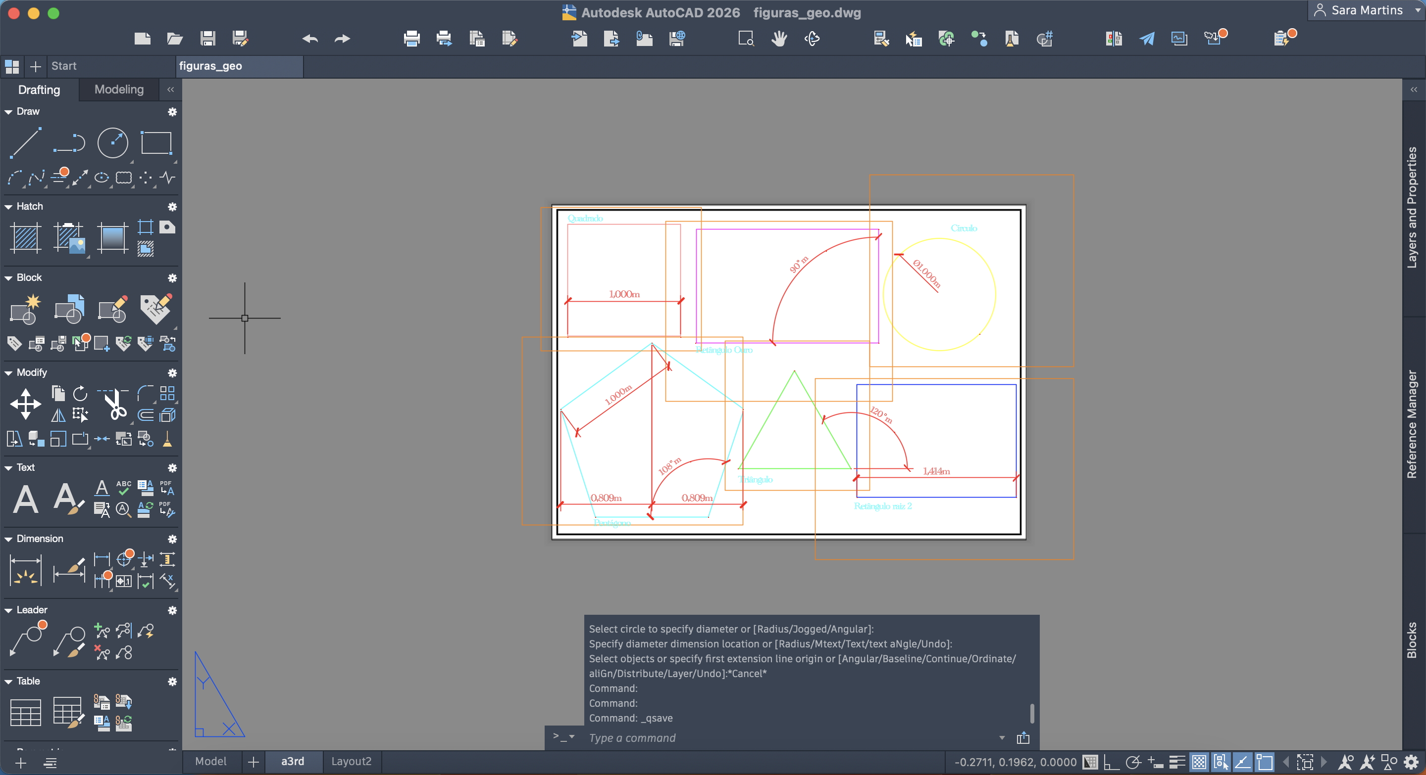 Conclusão do exercício das figuras geométricas no AutoCAD.