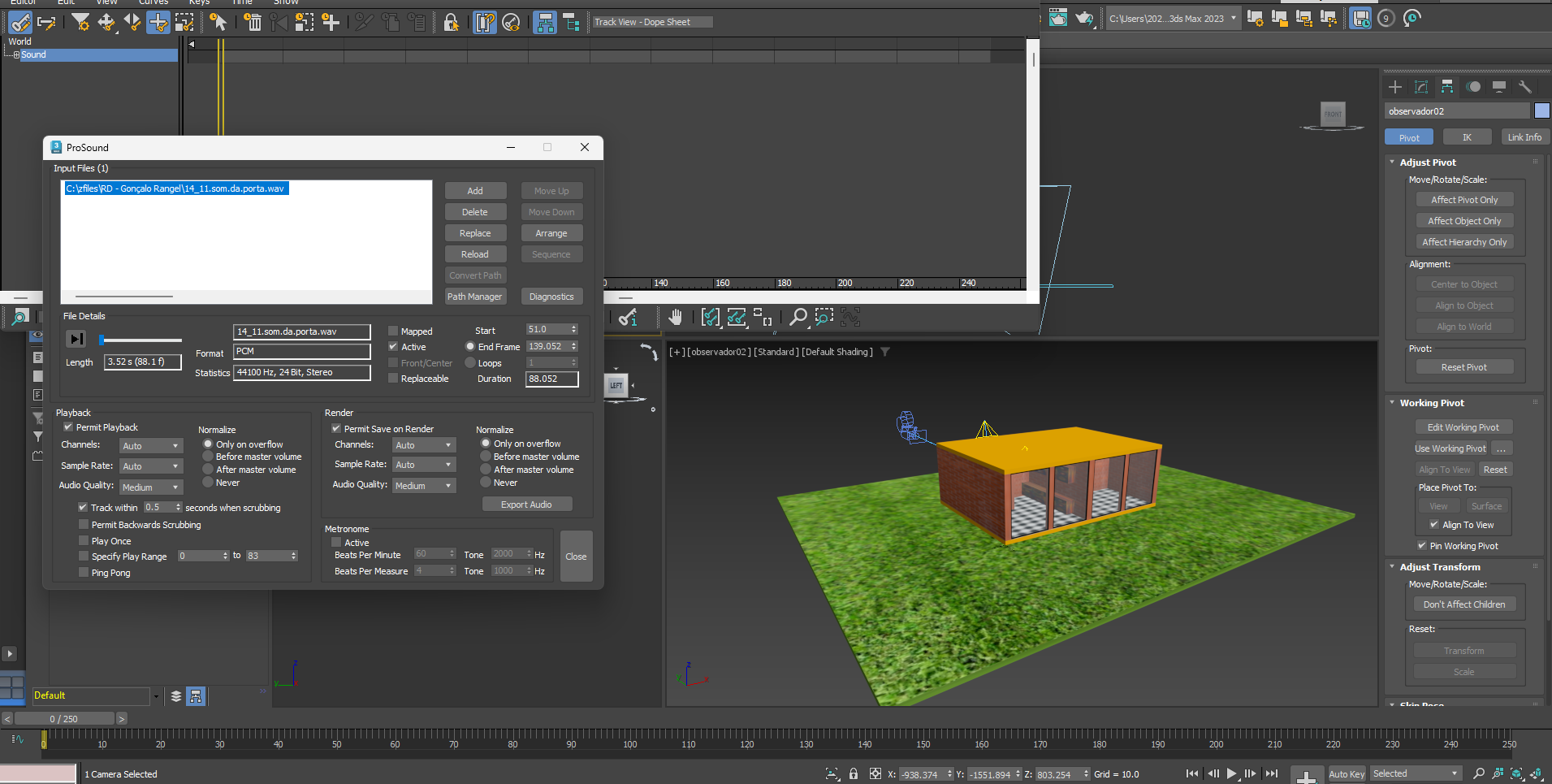 Na barra de cima - "Graph Editors" - "Track View - Dope Sheet" - World-Sound - Clicar em "Add / Remove Key" - Exportar som desejado.