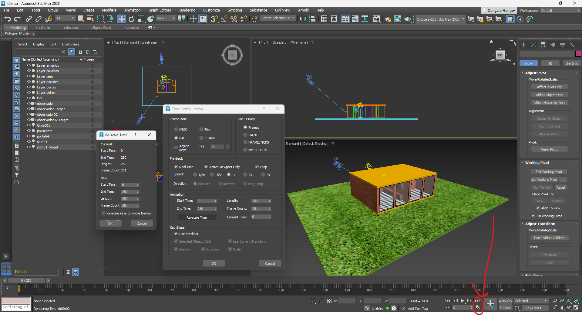 Na barra lateral da direita, criar foco de luz - Photometric - Target Light.