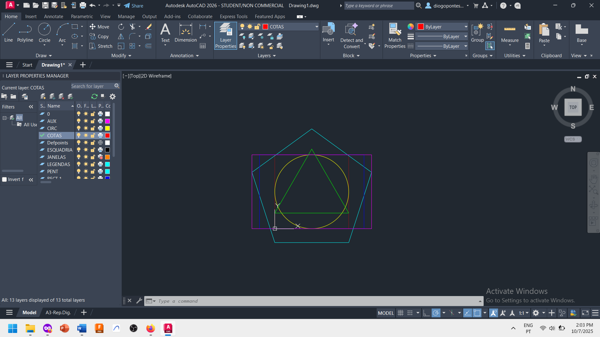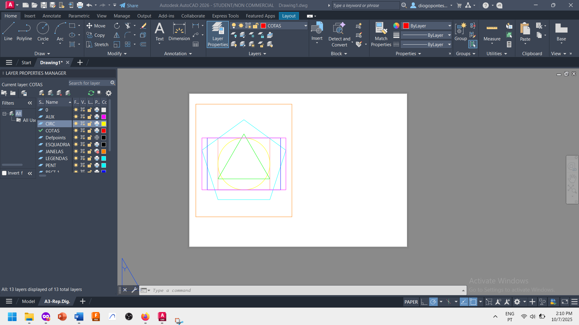 1. Desenho de figuras simples (quadrado, triângulo, círculo, rectângulo, rectângulo de ouro, pentágono), em que todas elas partilham o mesmo centro.