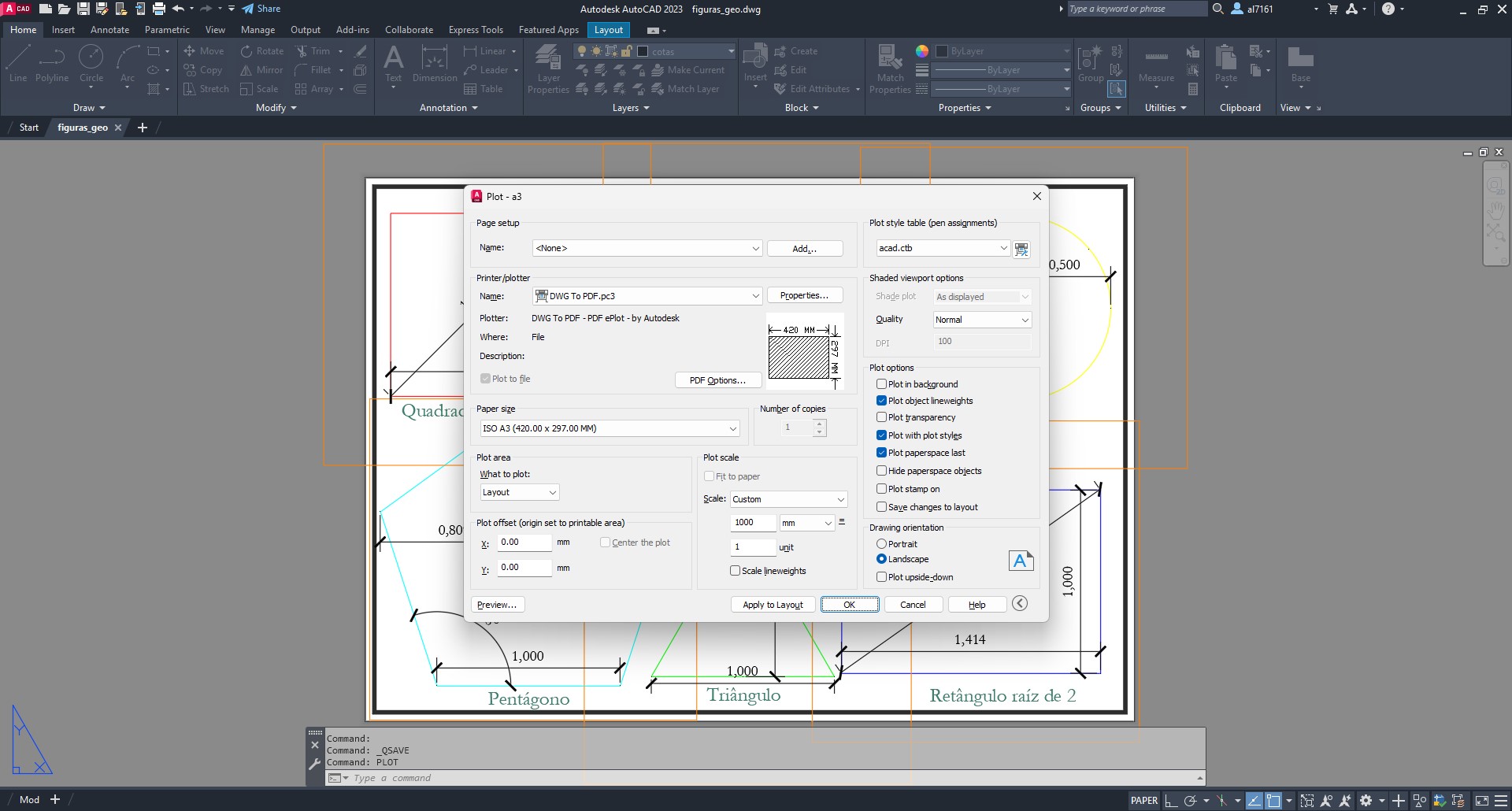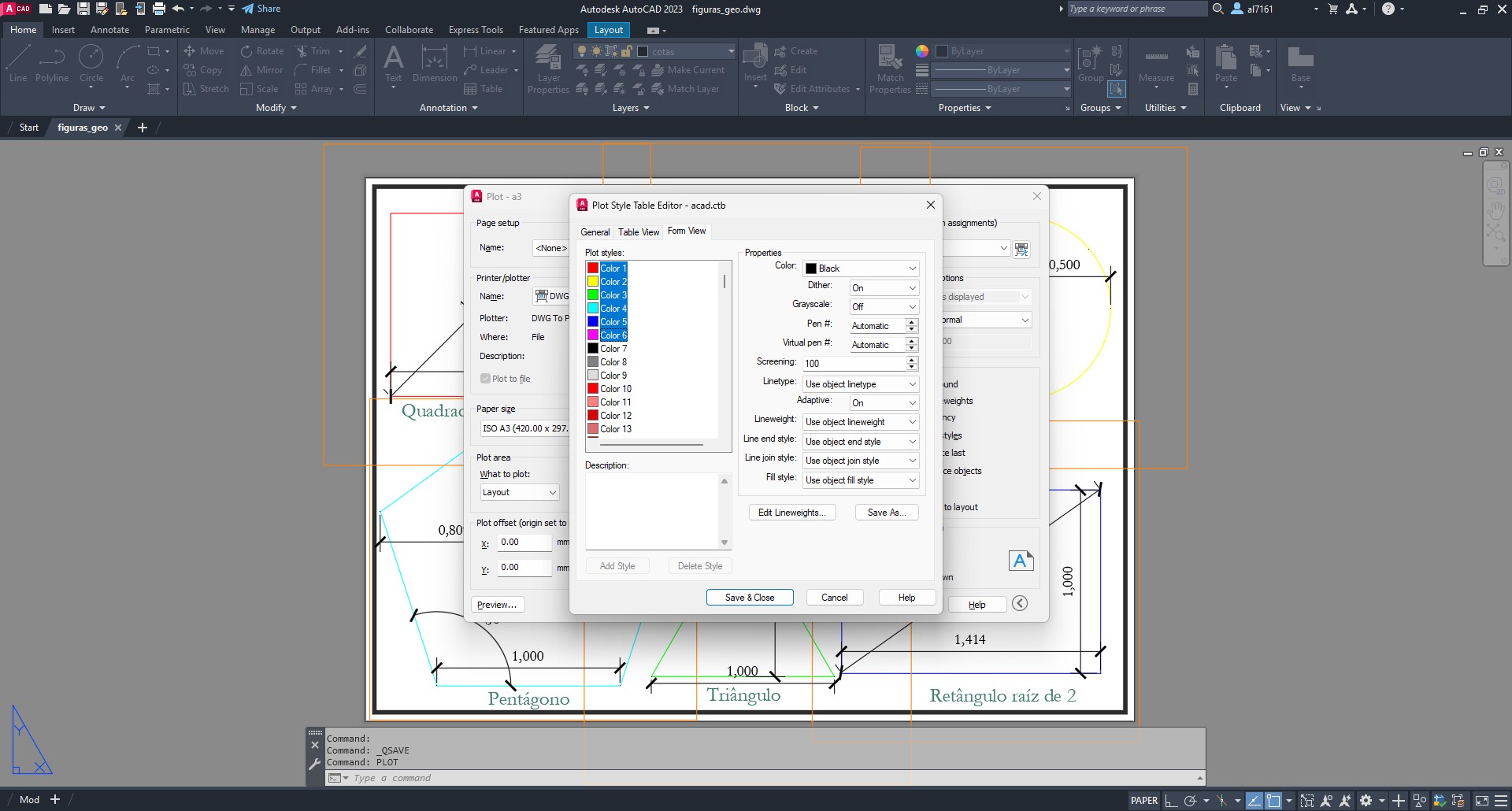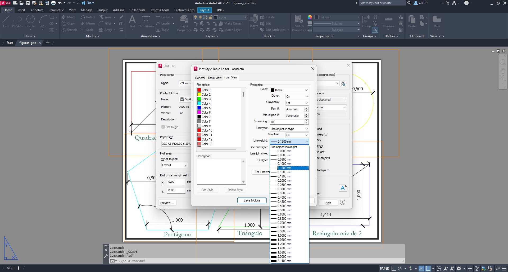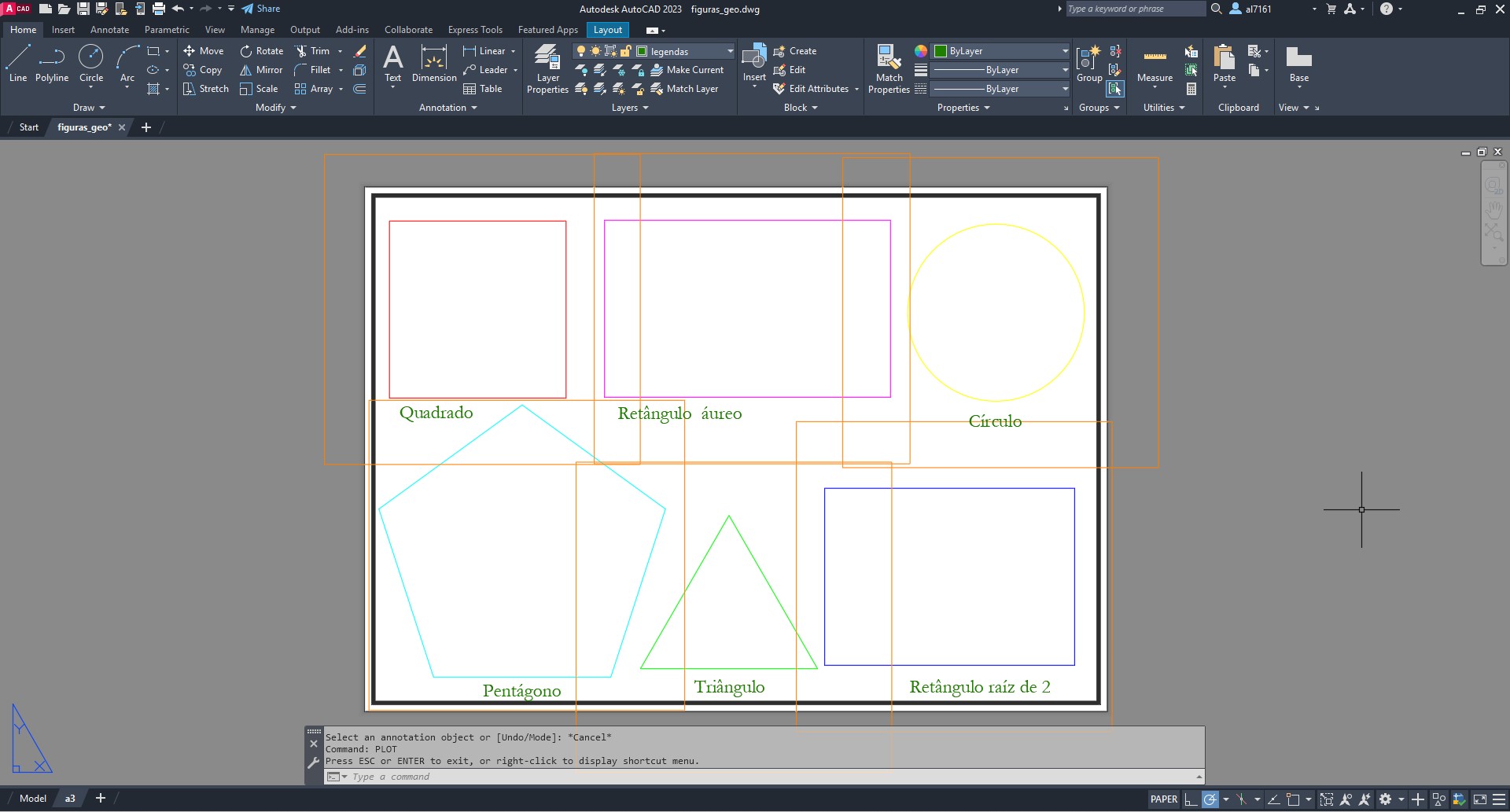 Plot Preview dos polígonos com Print e layer das Viewports desabilitada (LA-VPfreeze).