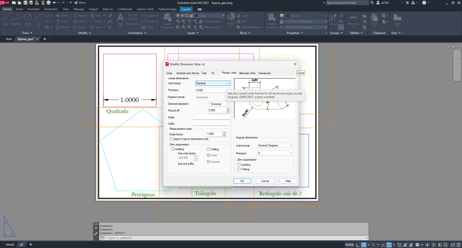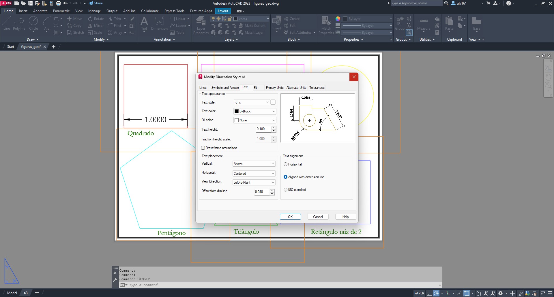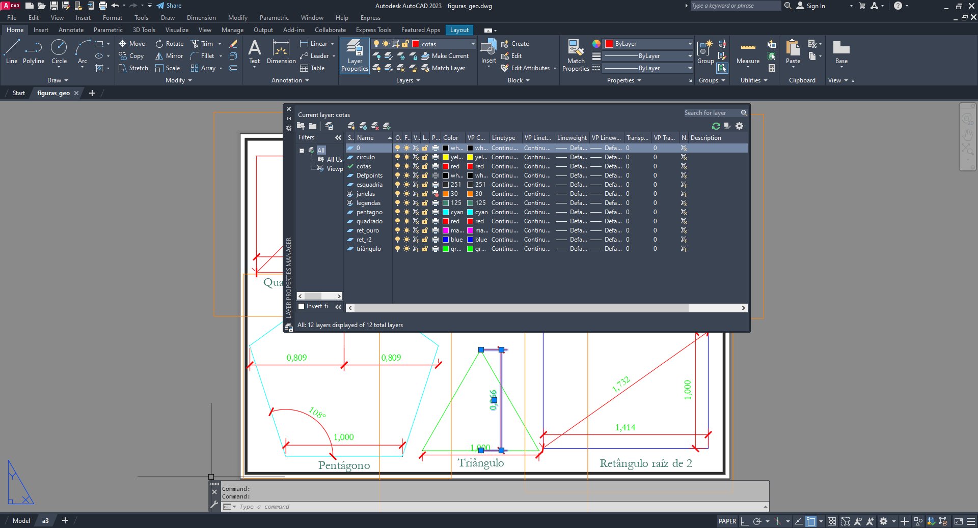 Mview, Zoom (Scale-1/10xp), Mview (Lock), Copy, Move, DText, Layers properties (VPfreeze) (Style) entre outros..