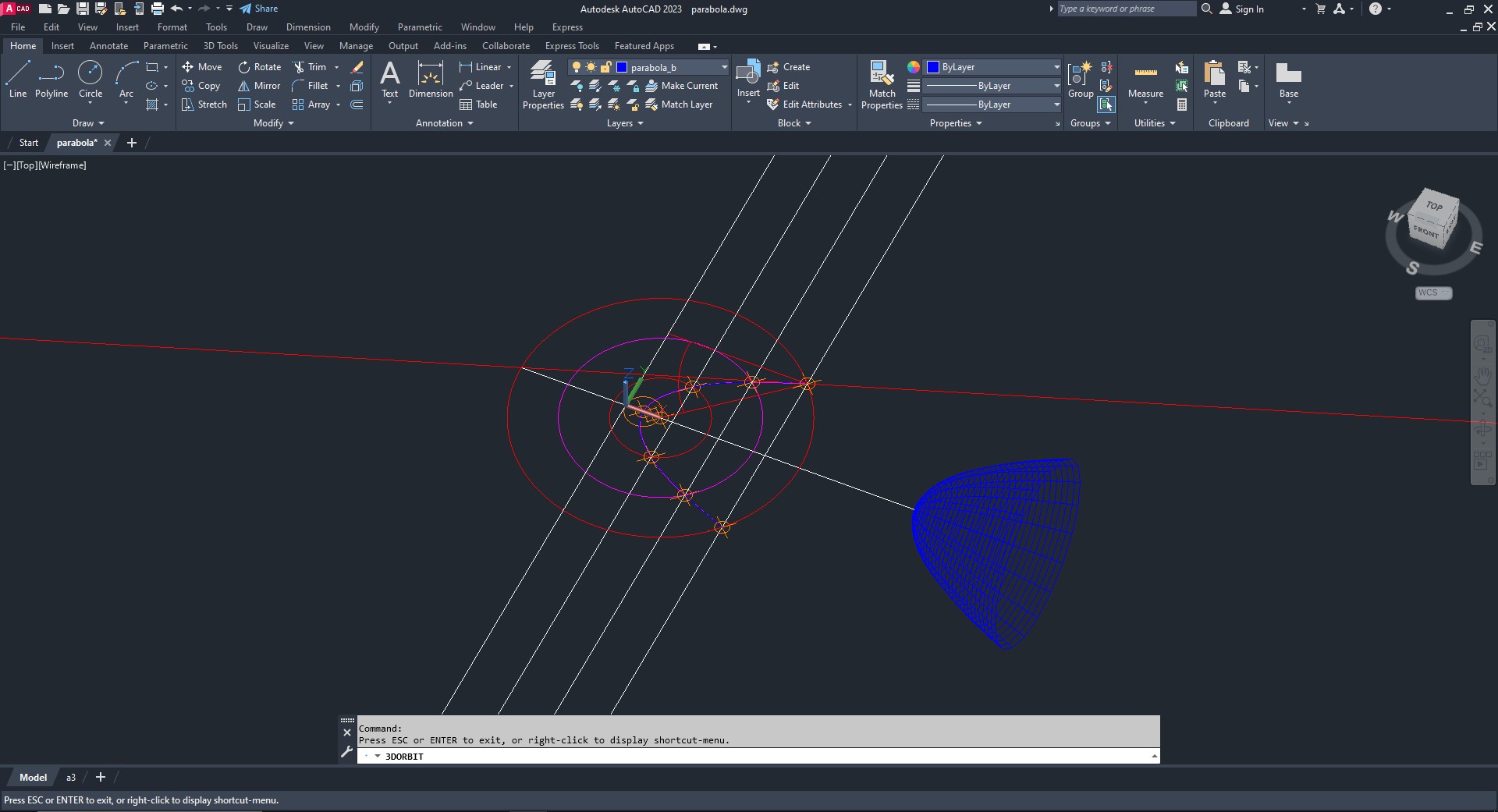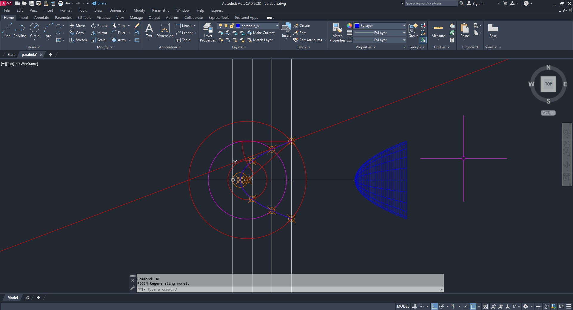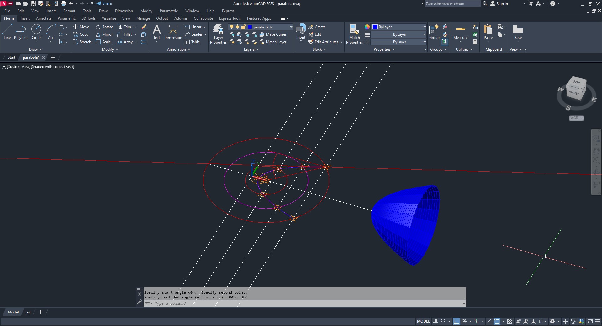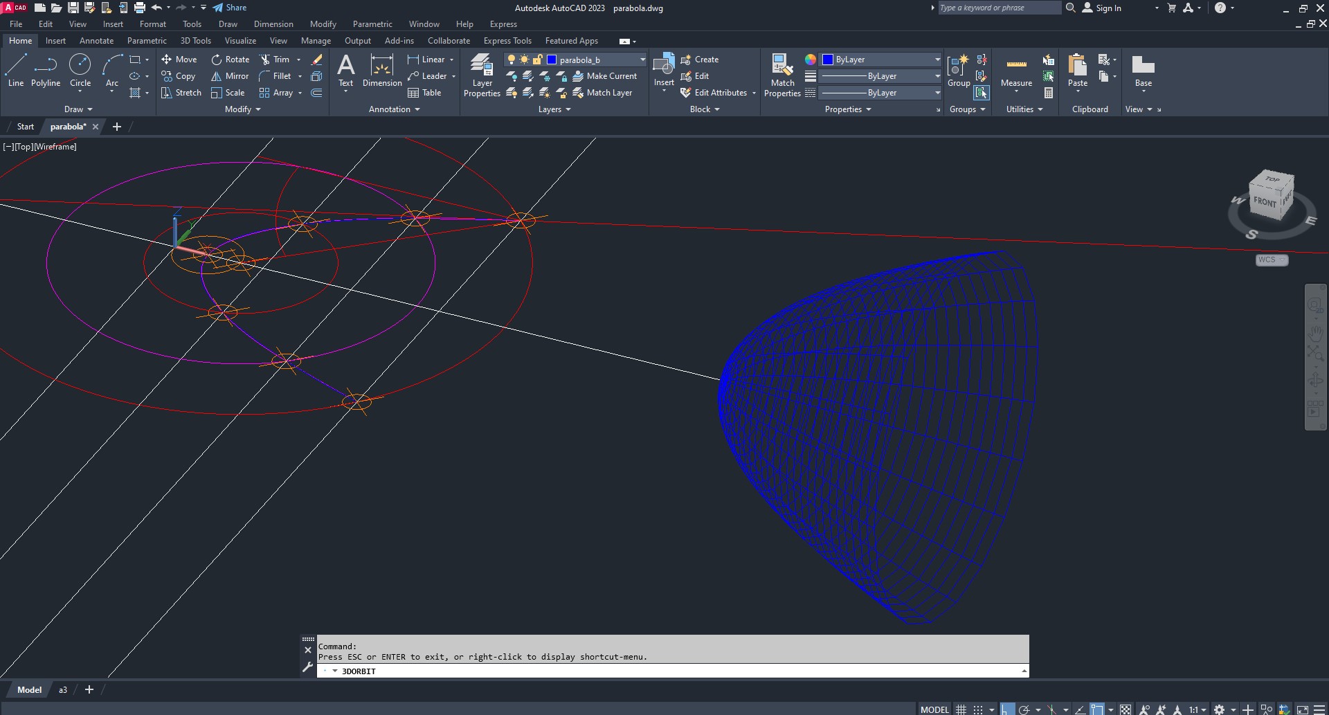 Comandos usados: XLINE, POINT, DDPTYPE, OFFSET, SPLINE, SURFTAB, REVSURF..
