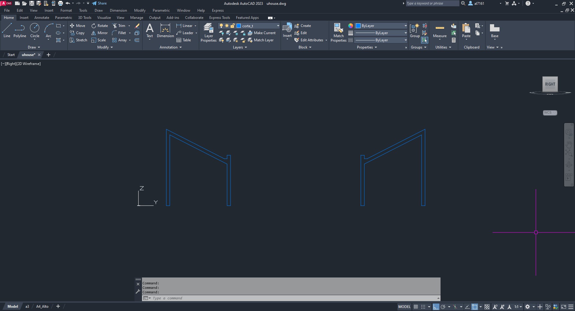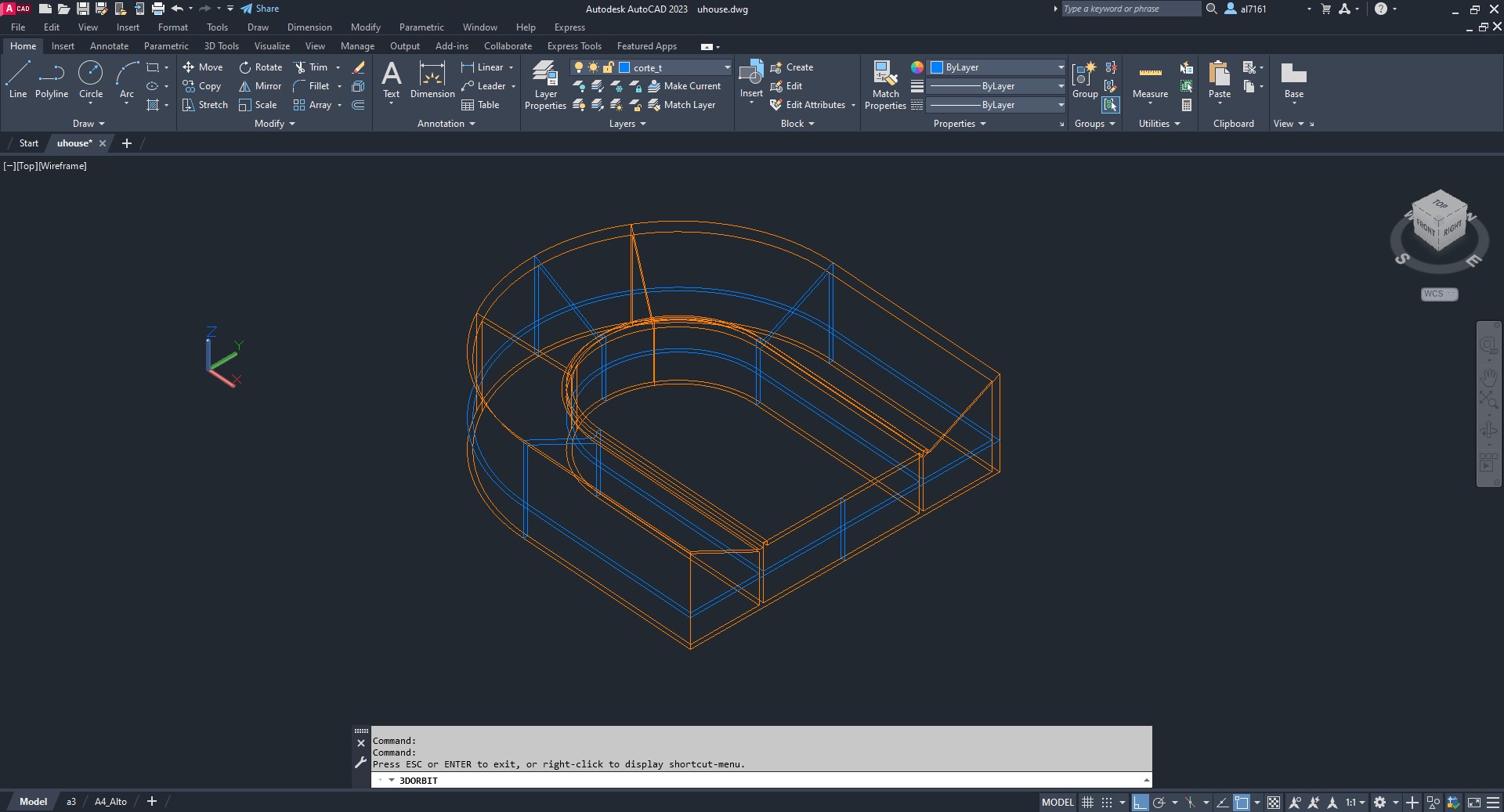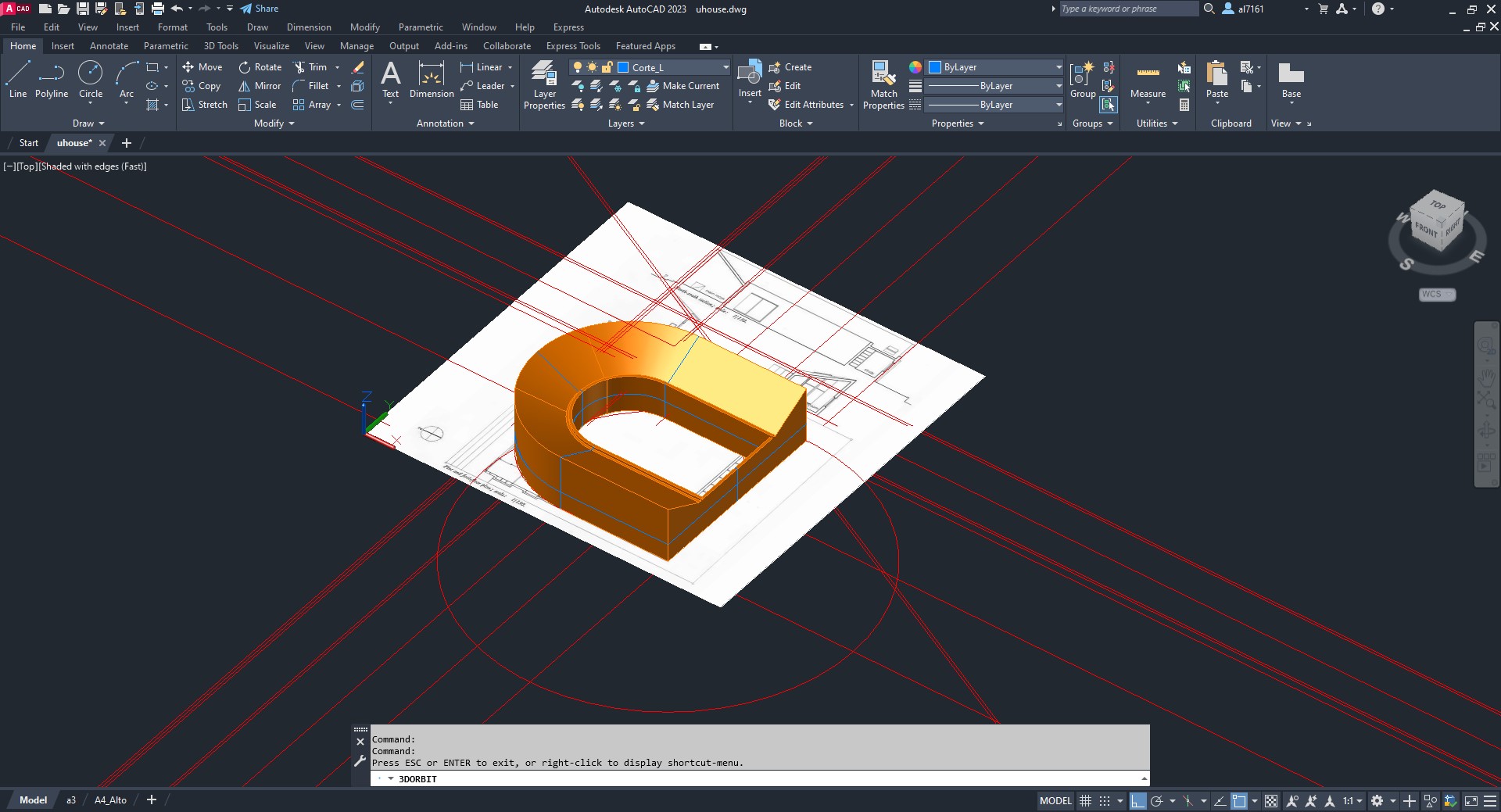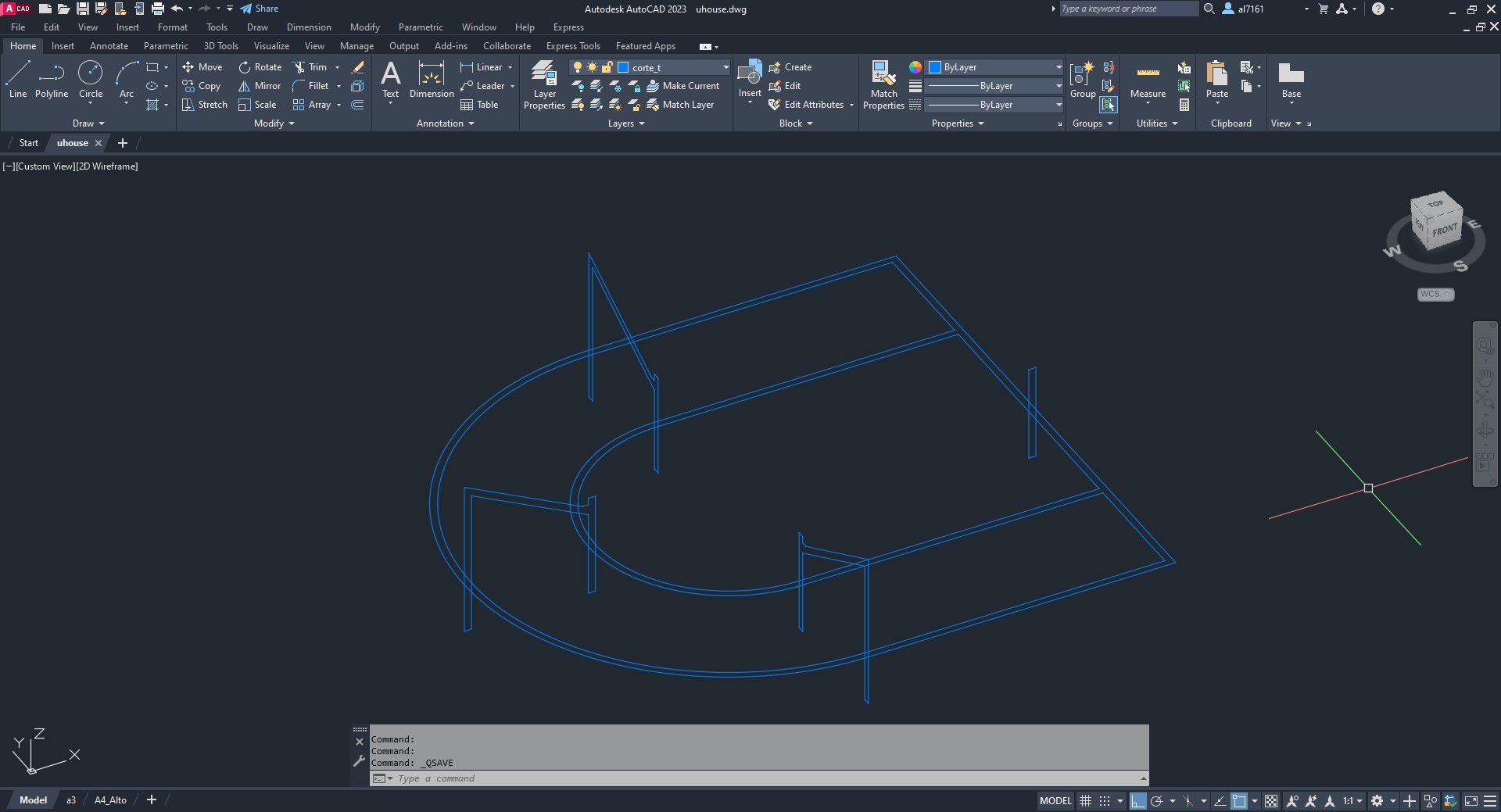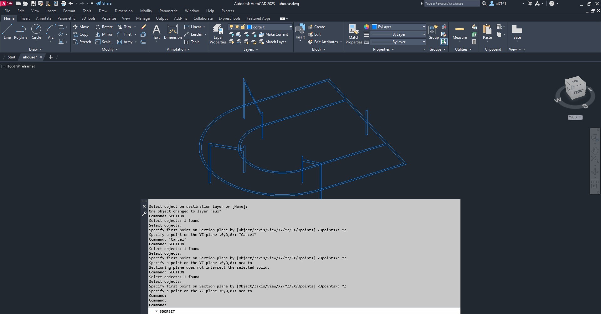 Com o Comando SECTION obtemos cortes e planta da estrutura.