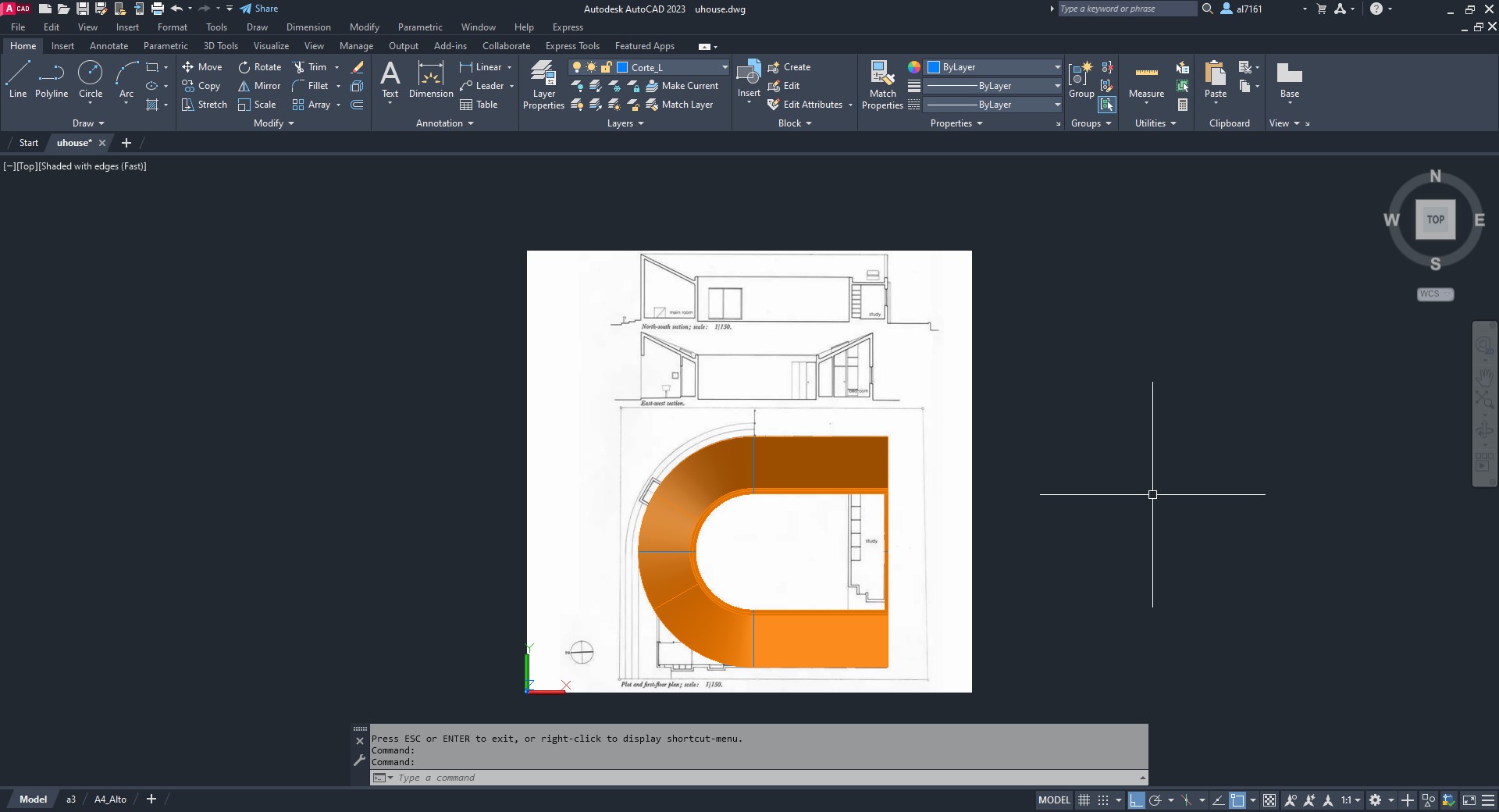 Depois de redefinir a imagem de planta e corte para a escala real,