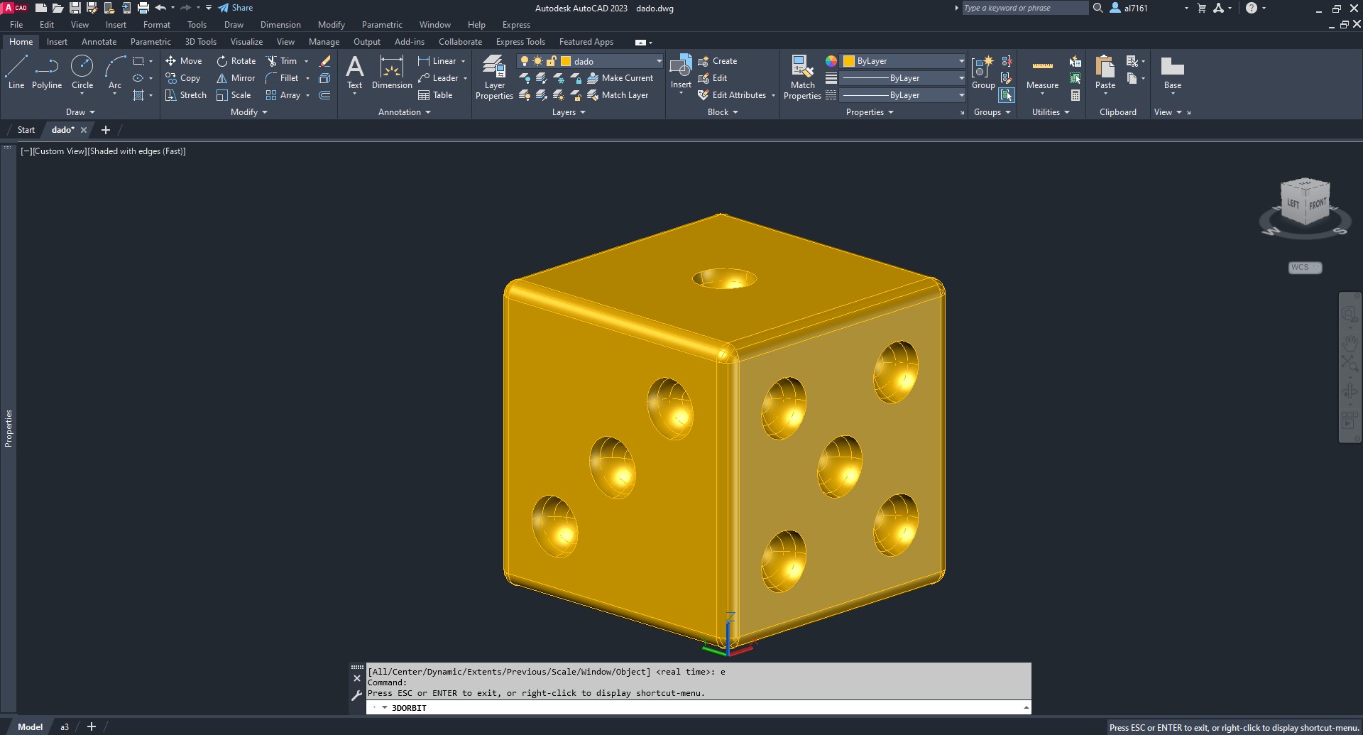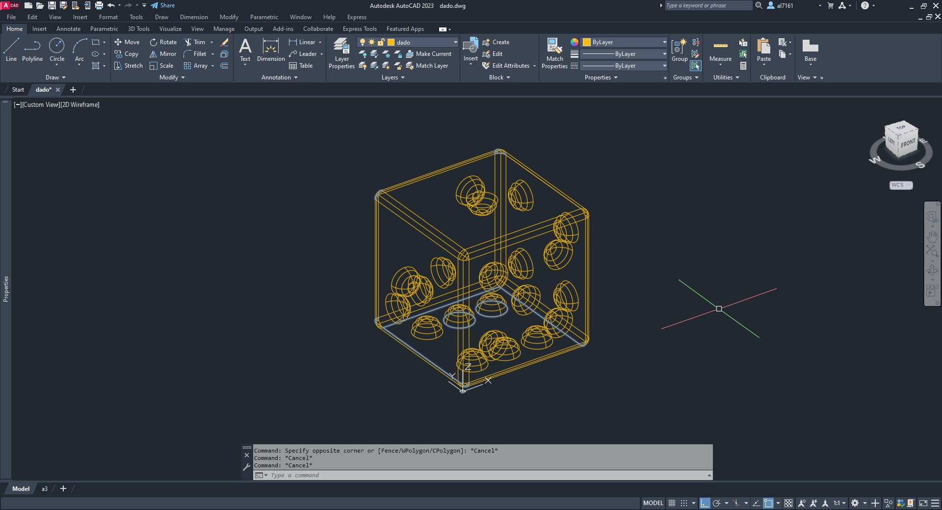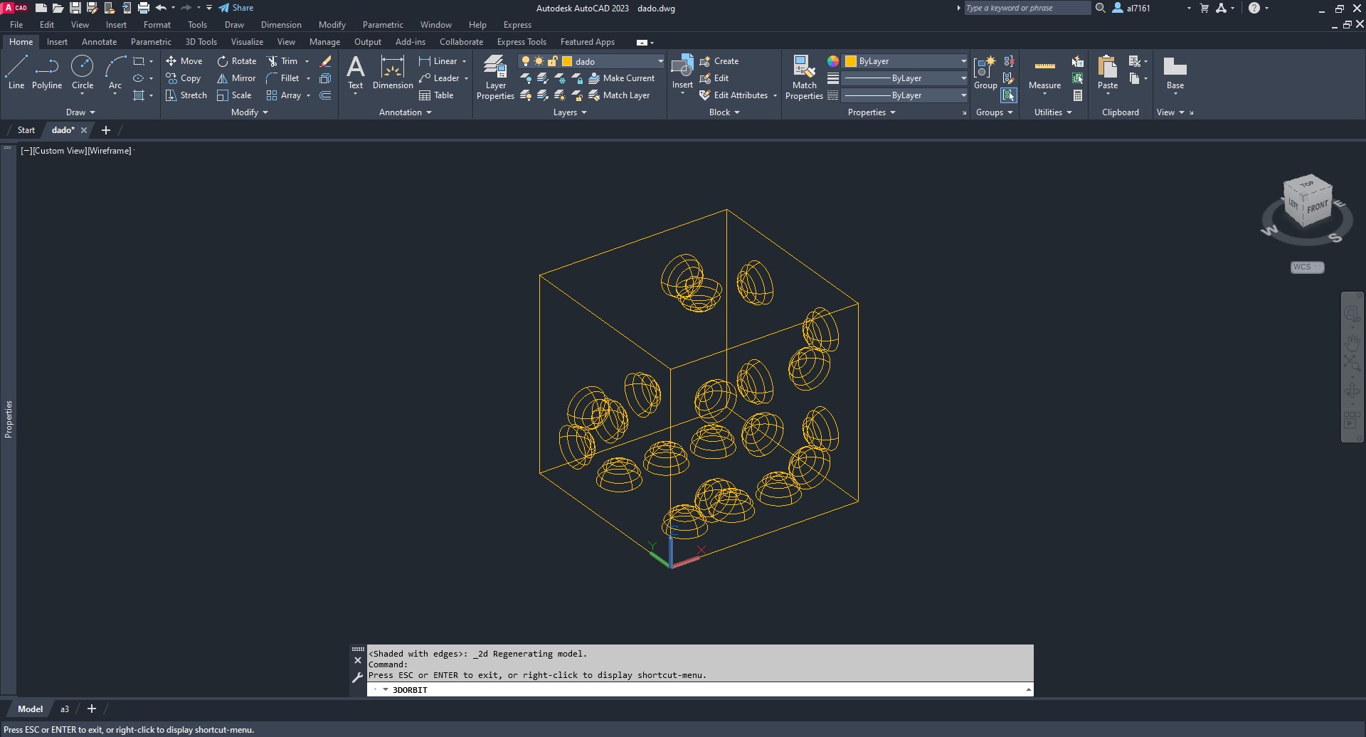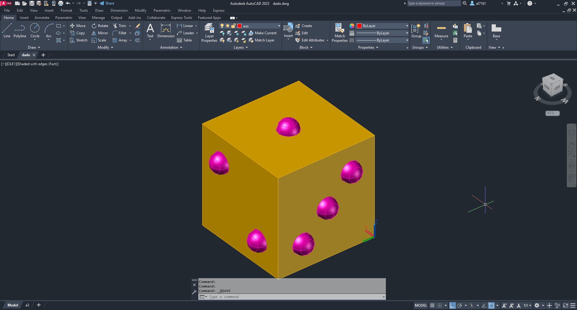 Comandos usados: BOX, SPHERE, SUBTRACT, FILLET, ALIGN, UNION, ARRAYCLASSIC.
