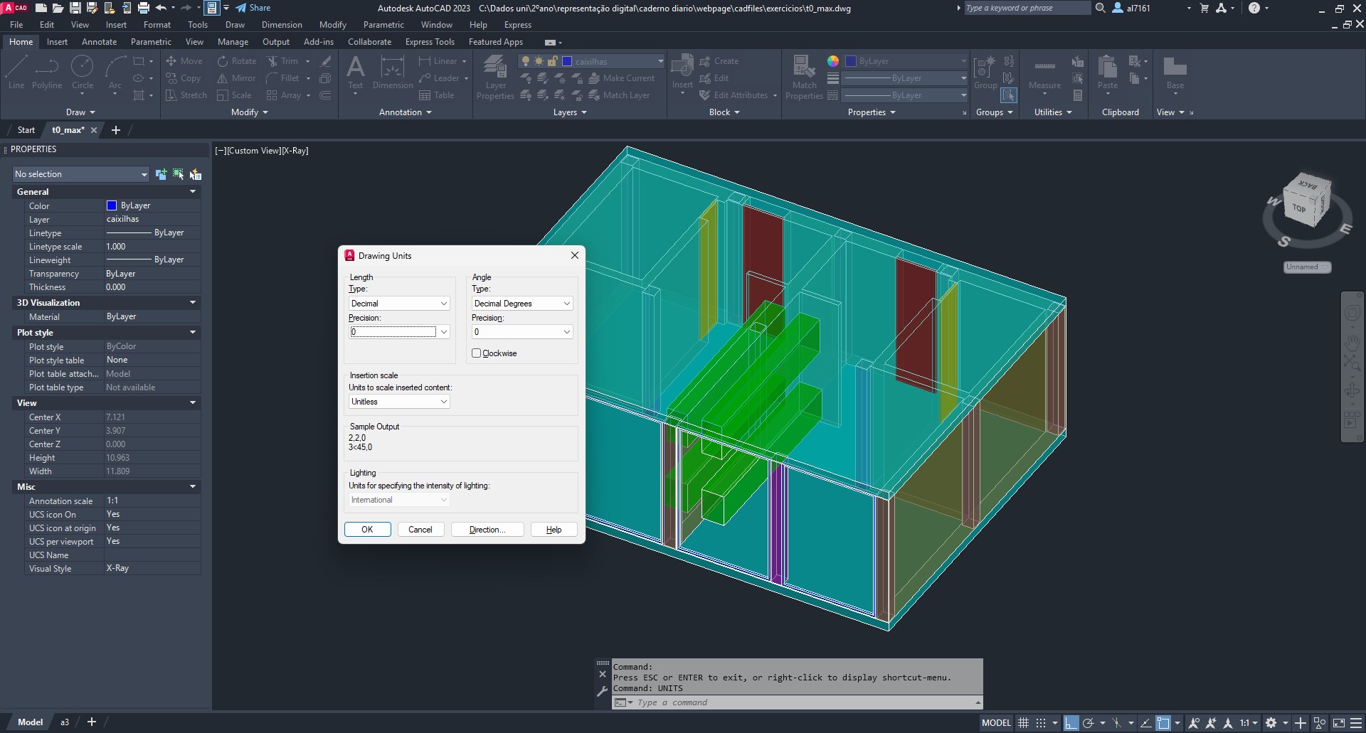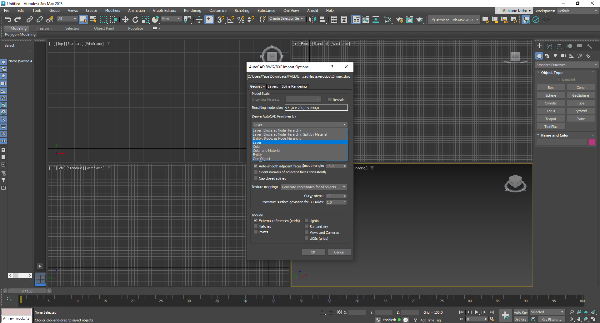 Importação de um t0 em .dwg para 3DS MAX. T0 com alterações de escala x100,