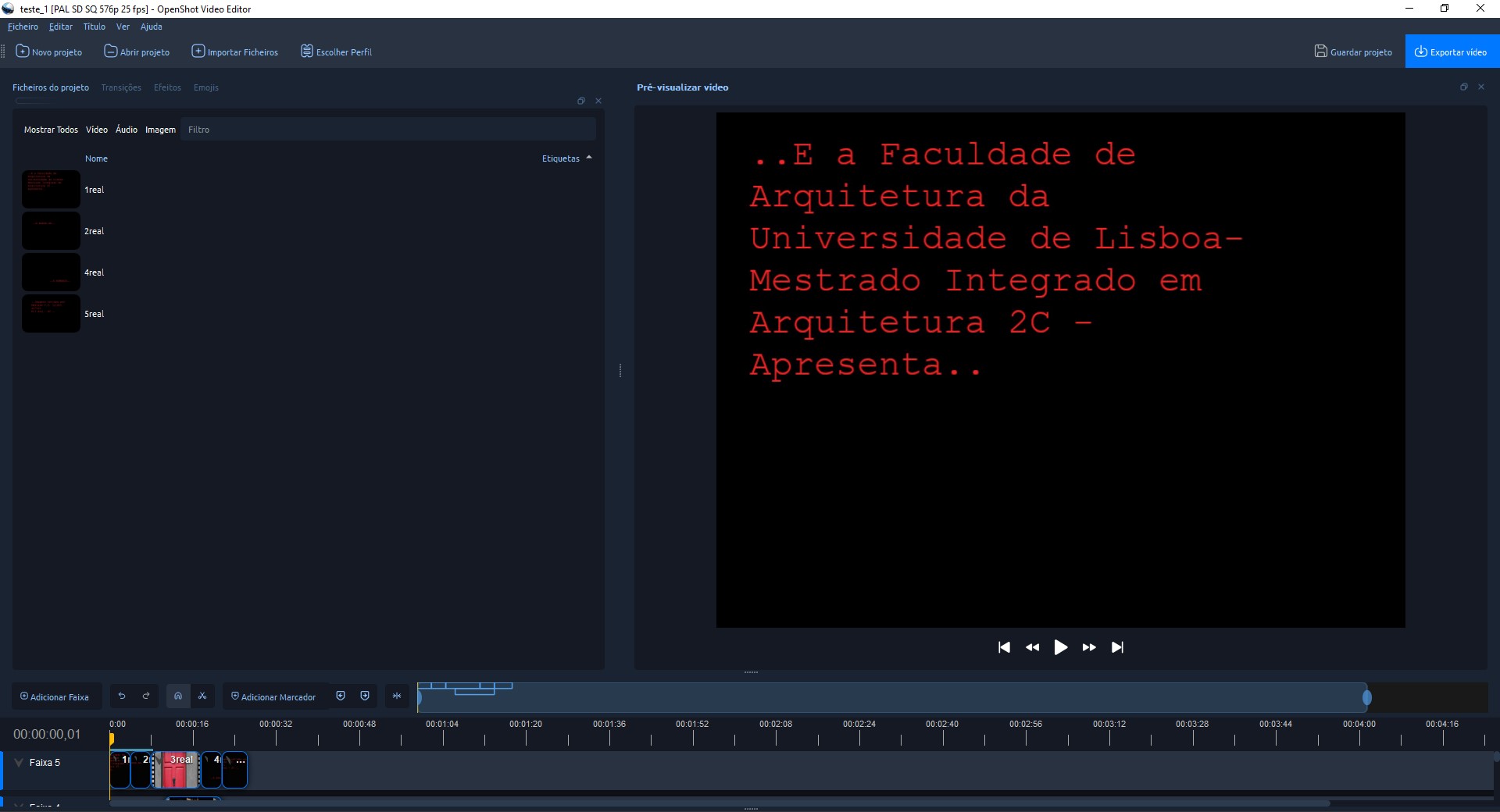 Manipulação de imagens no Open shot video editor.